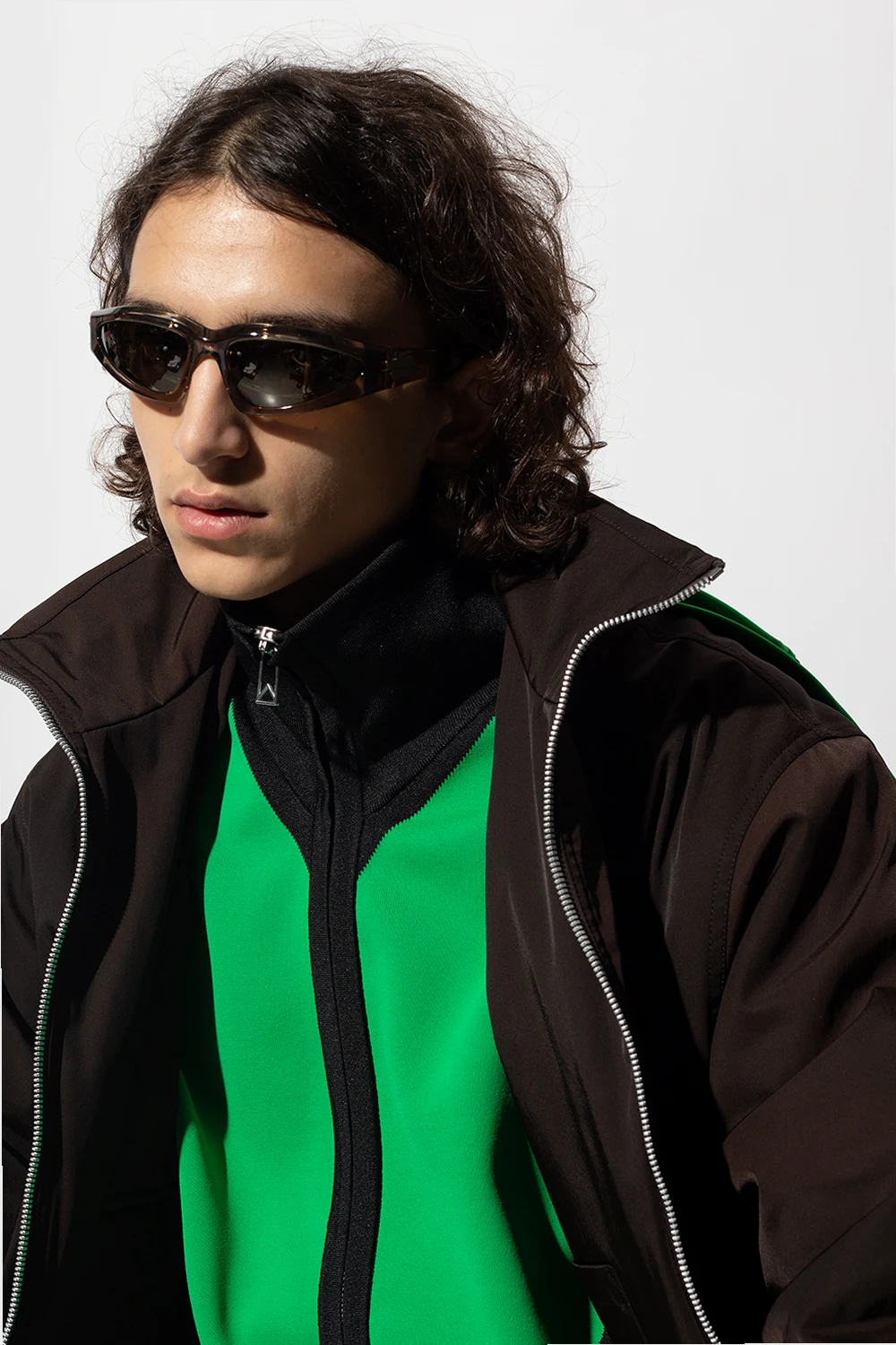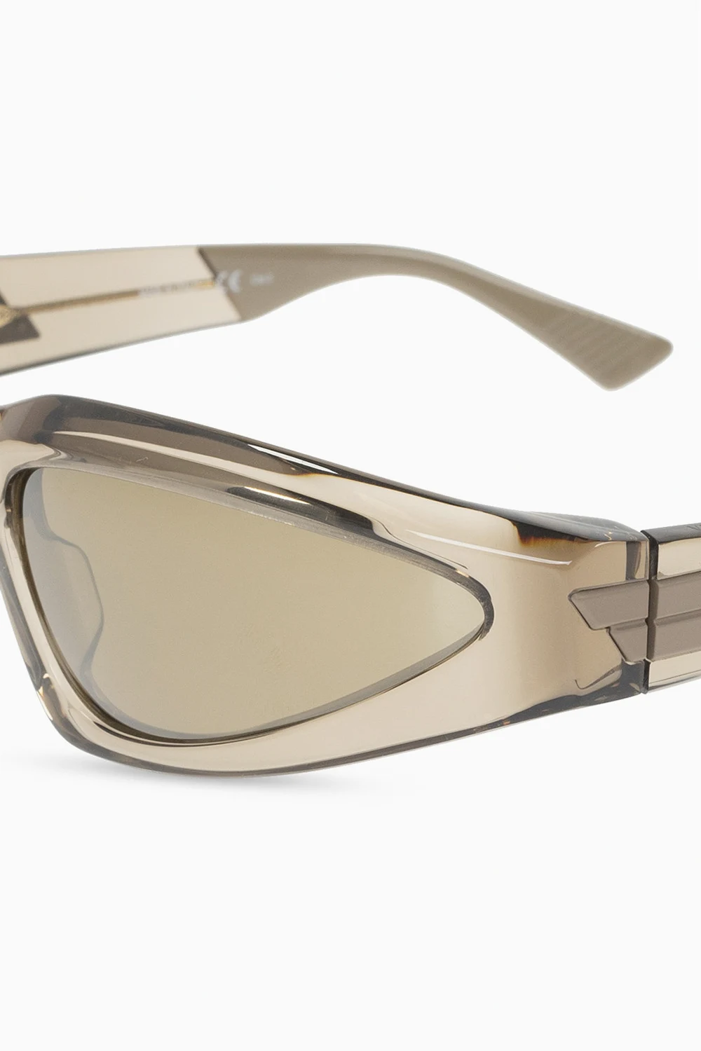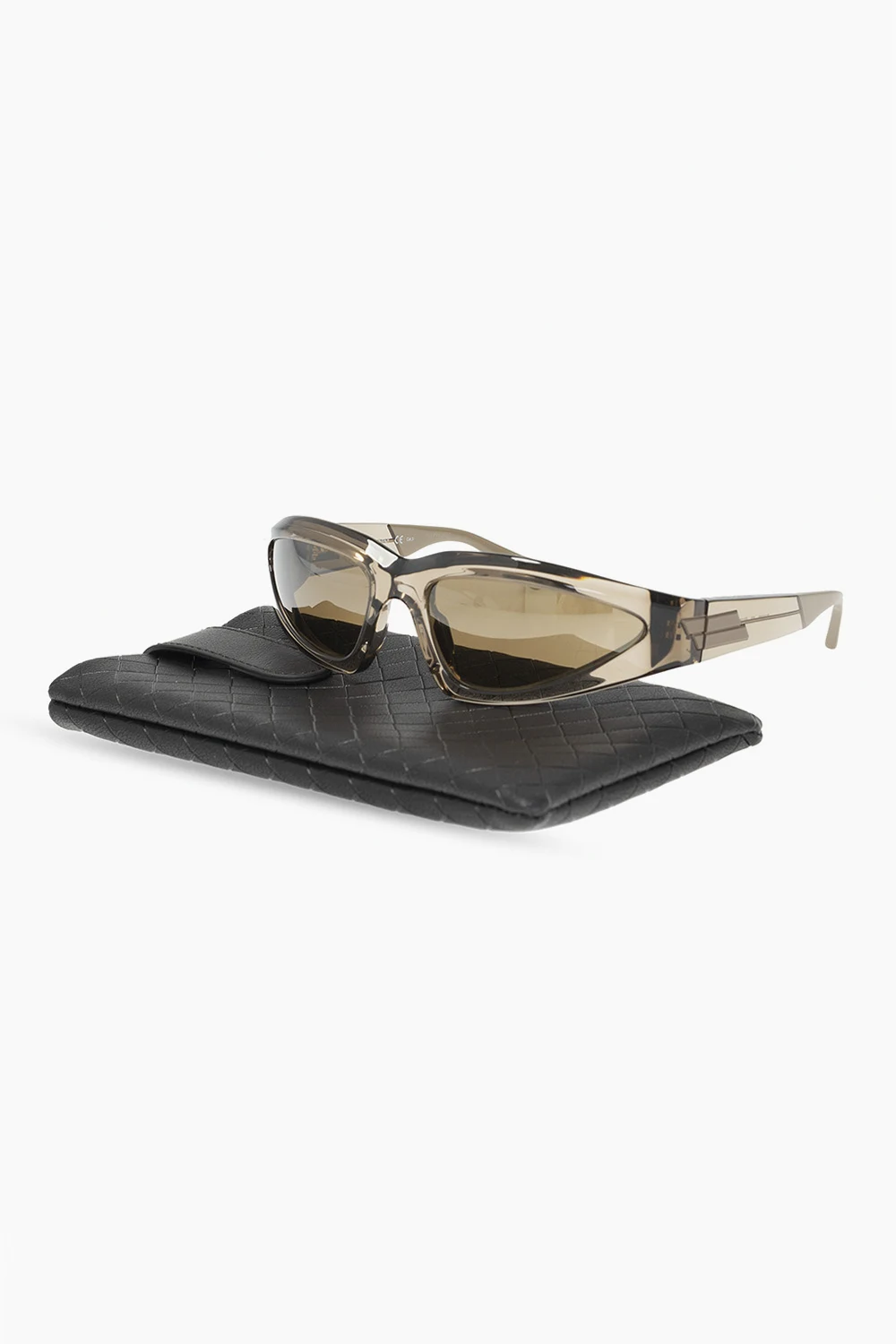 Brown, translucent sunglasses from Bottega Veneta. Crafted from metal and acetate, this pair comes with a case and features certified brown lenses with 100% UVA and UVB protection.