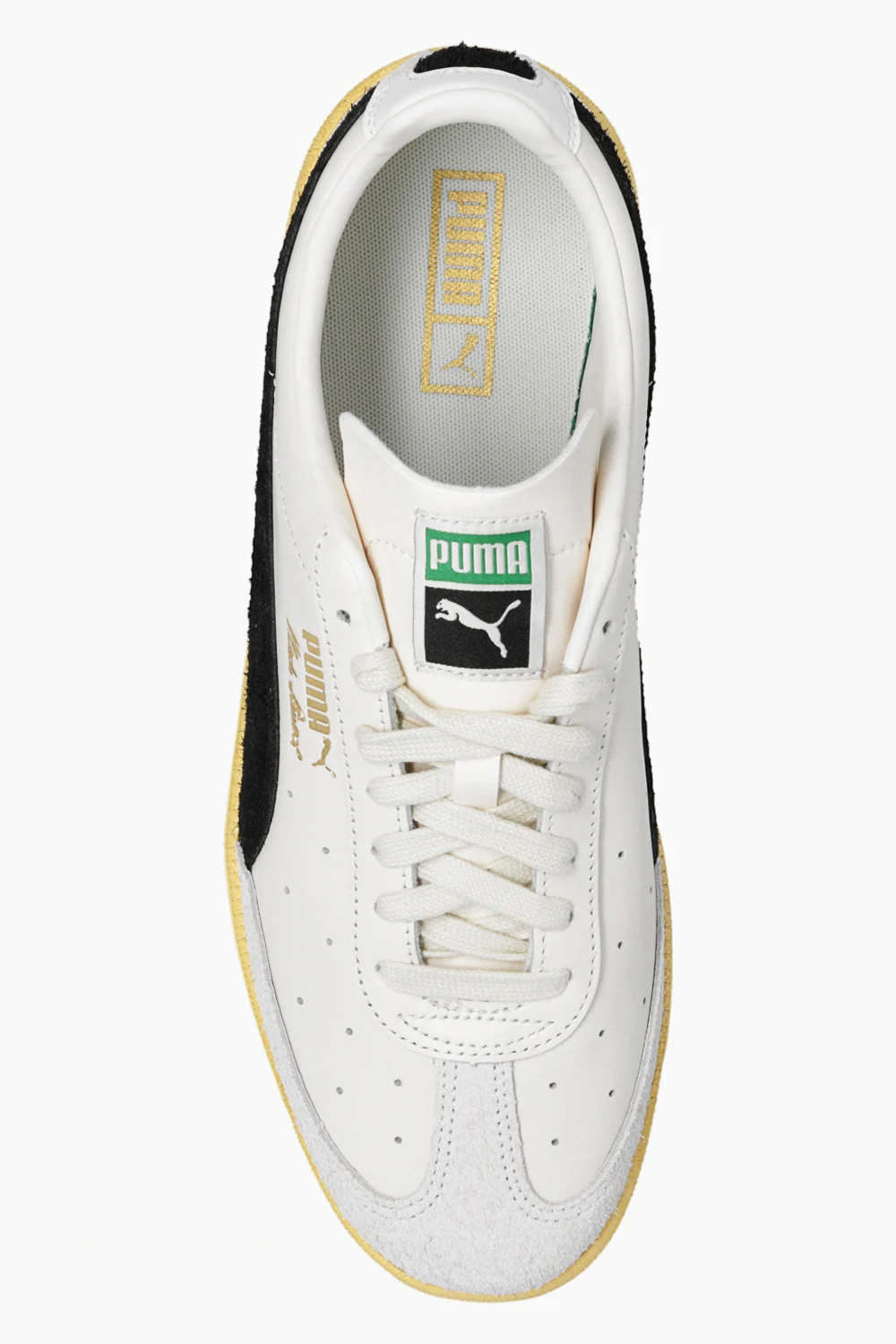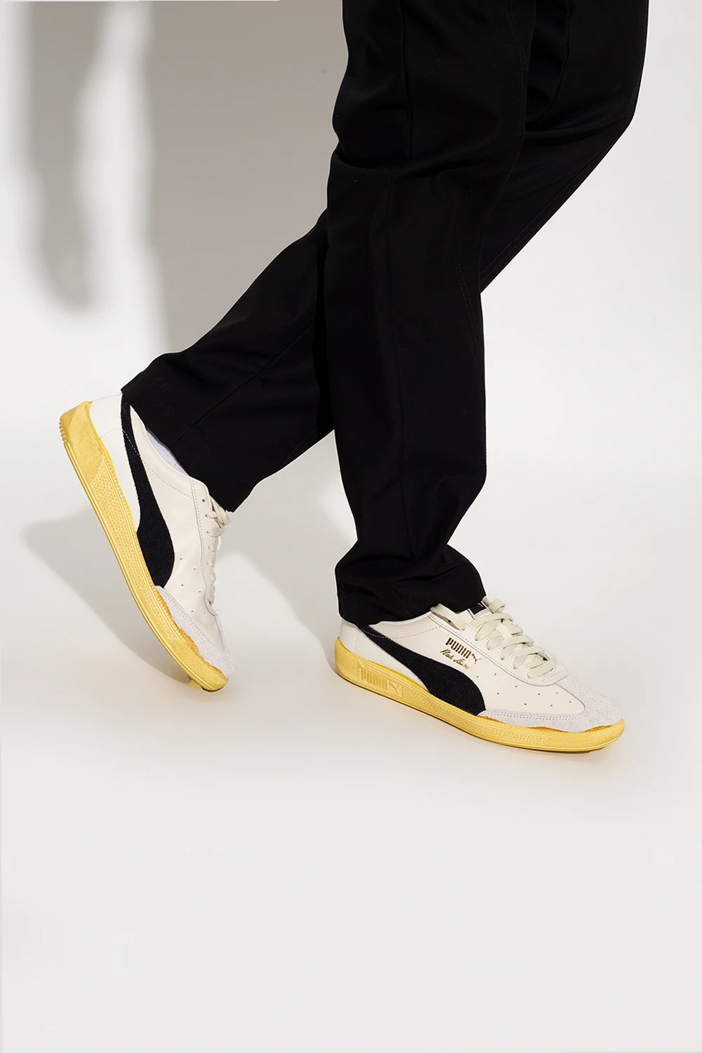 White and yellow ‘Vlado Stenzel The NeverWorn’ sneakers from Puma. With a leather and fabric upper, this pair is complete with the iconic logo and the signature of handball hero Vlado Stenzel.