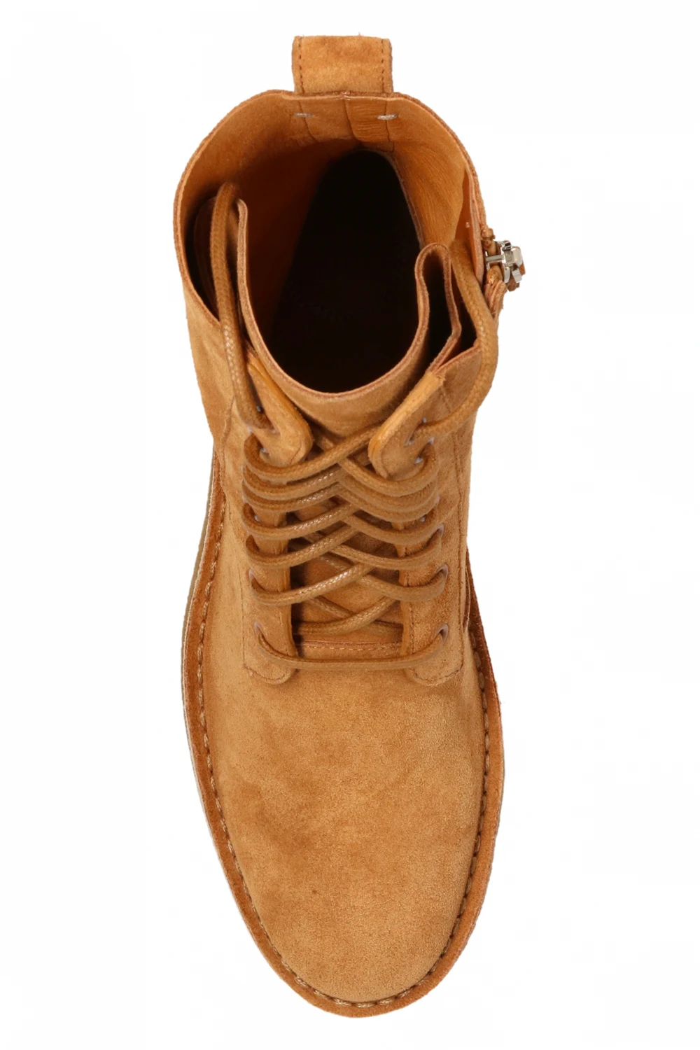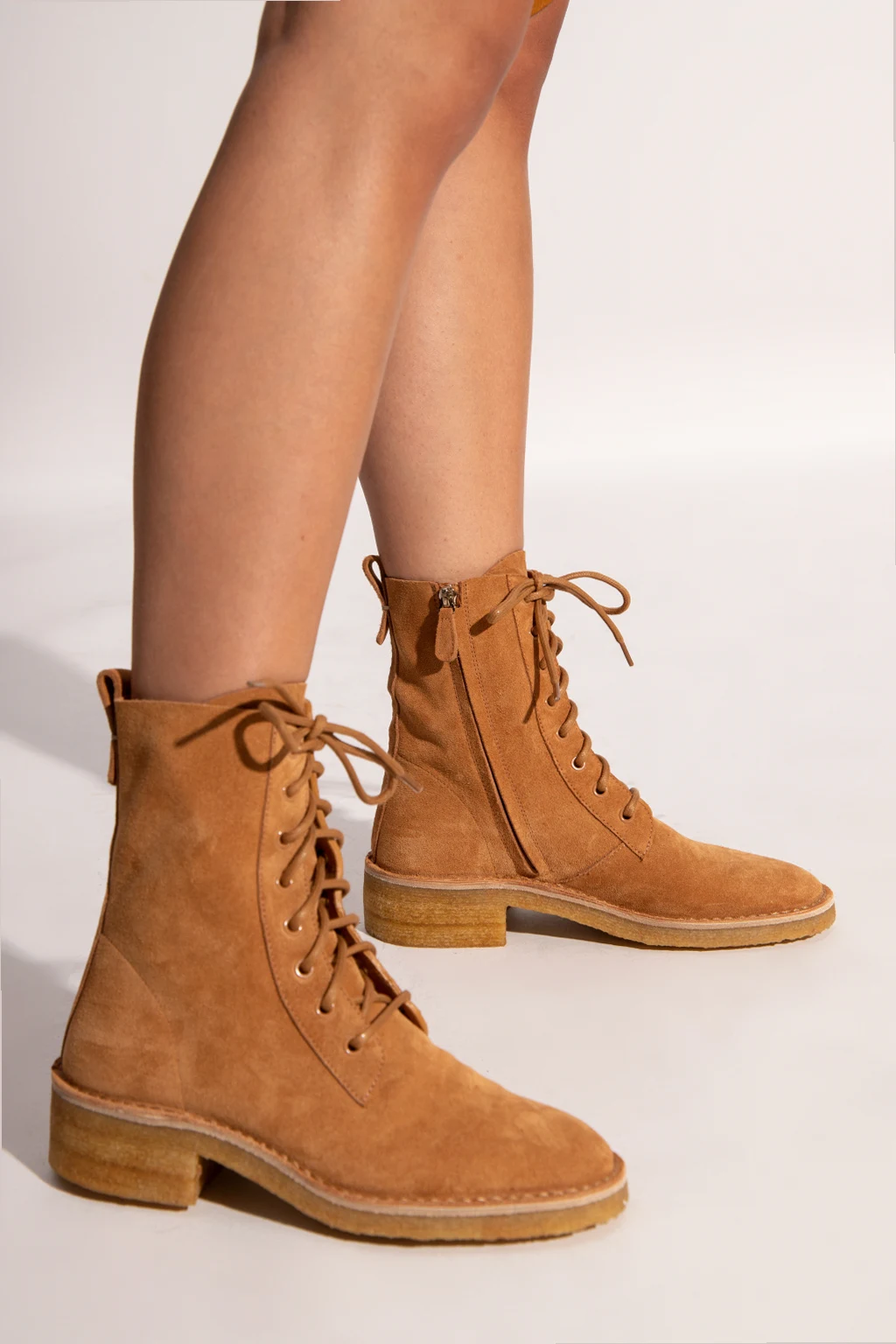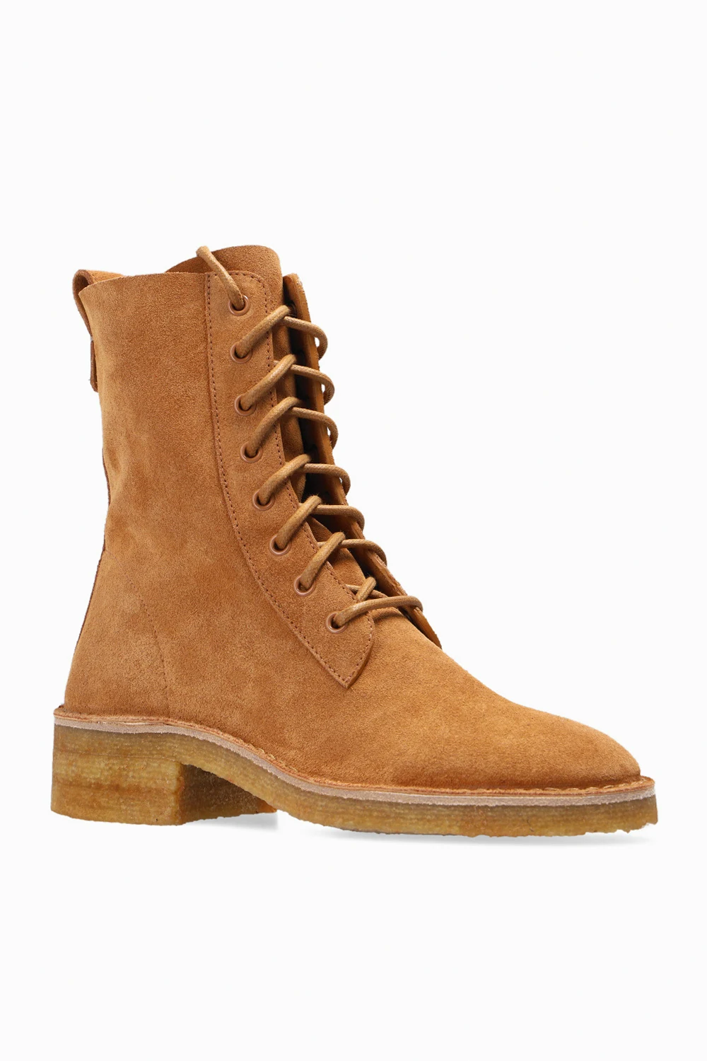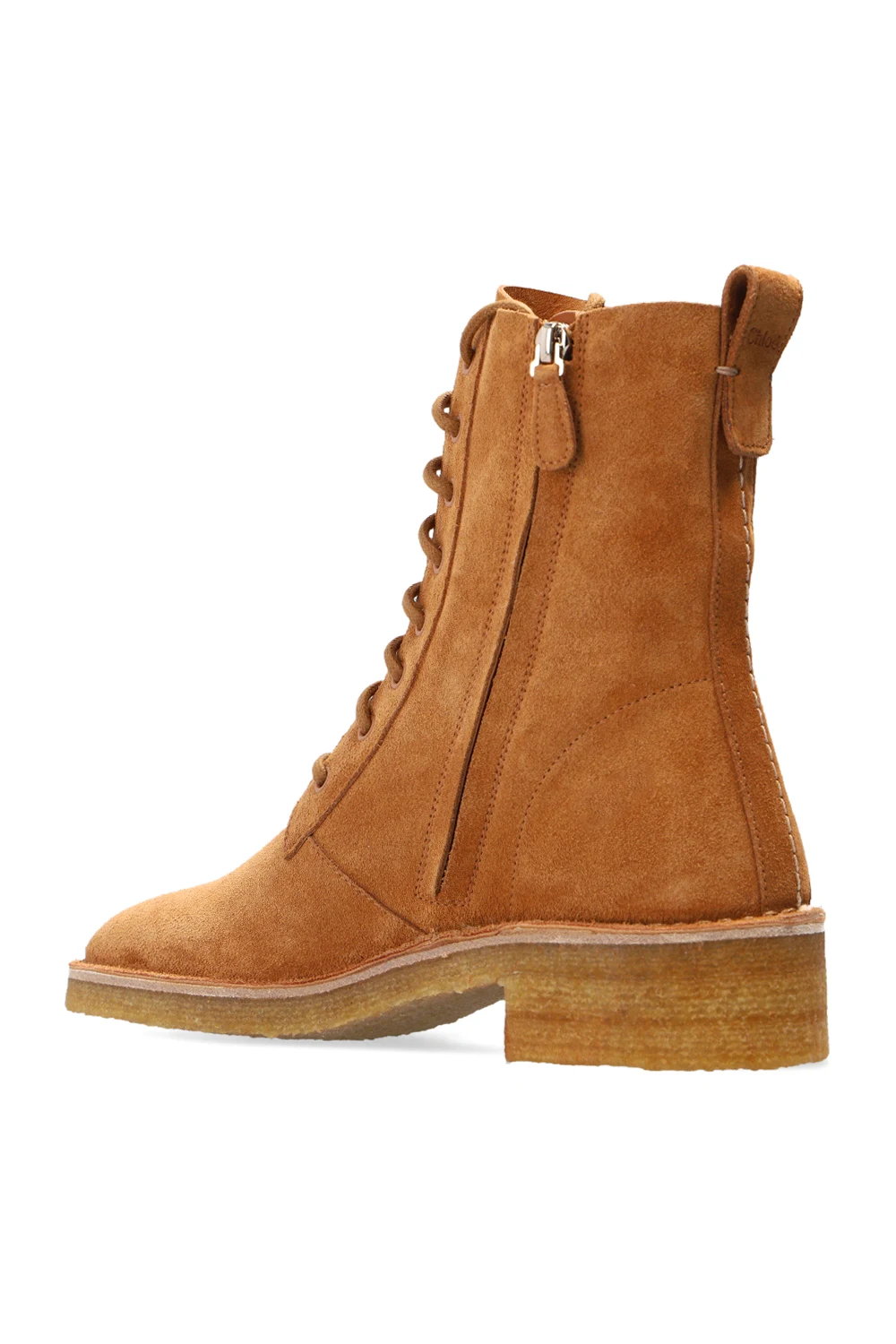 Brown ‘Edith’ boots from Chloé. Crafted from leather, this lace-up pair features a zip fastening, almond toe and beige rubber sole.