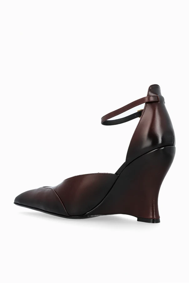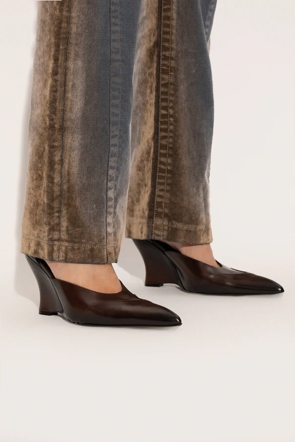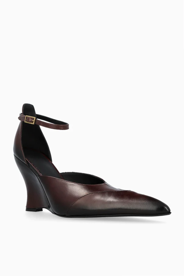 Sabaton Wedge-Schuhe der renommierten Marke KNWLS sind die Quintessenz von Raffinesse und zeitgenössischer Eleganz. Die spektakuläre, feminine Pump-Silhouette mit dynamisch geformtem Keilabsatz unterstreicht den modernen Charakter des Modells, während die markant spitze Kappe sowie die stark geschlossene Ferse dem Schuh eine faszinierende, geometrische Form verleihen.