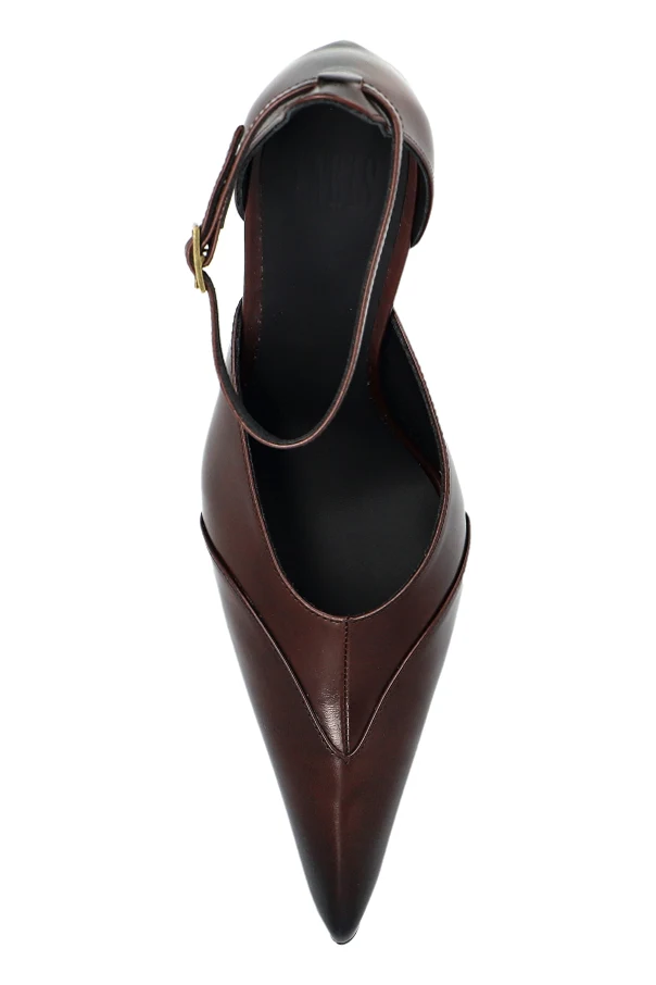 Außergewöhnliche Qualität zeigt sich in jedem Detail – das Obermaterial, das Innenfutter und die Sohle sind aus ausgewähltem, leicht glänzendem Kalbsleder gefertigt. Dieses einfarbige, tiefbraune Modell besticht durch eine subtile „V“-Naht sowie einen eleganten Riemen, der den Knöchel umschließt. Die Schuhe bieten nicht nur Komfort, sondern betonen auch den einzigartigen Stil und den exklusiven Charakter jedes Outfits.