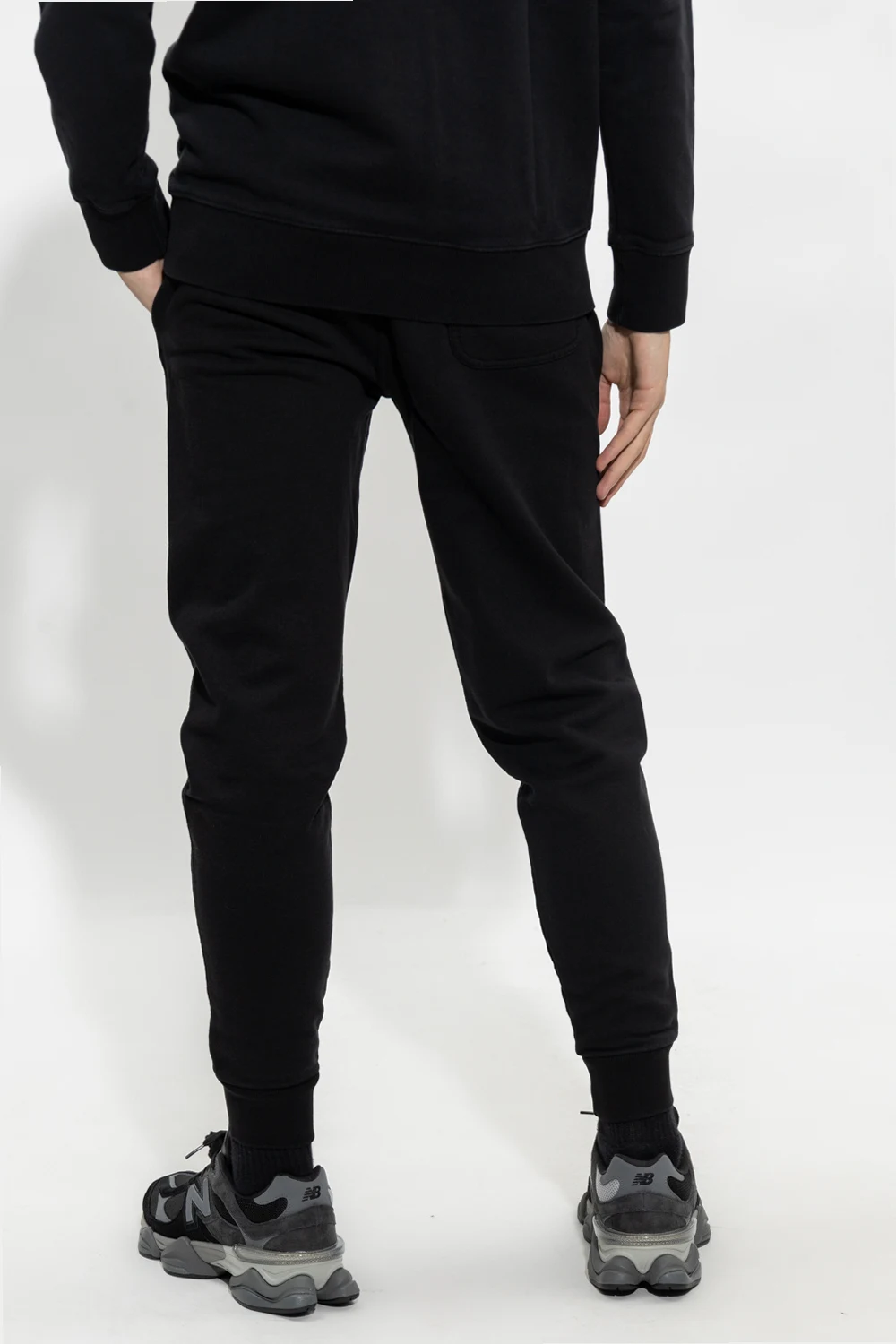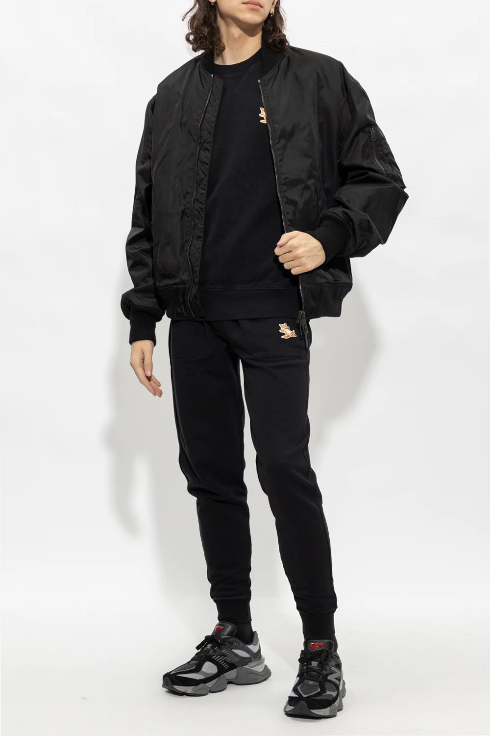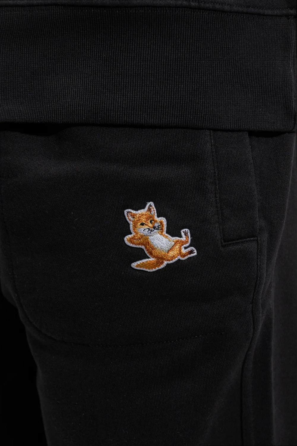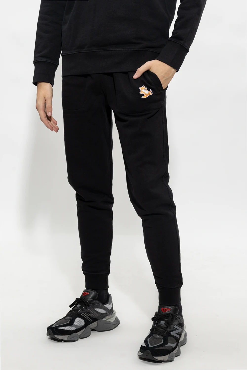 Black sweatpants from Maison Kitsune. Made of cotton, this pair features a drawstring waistband, elasticated cuffs, three slip pockets and a logo patch on the front.