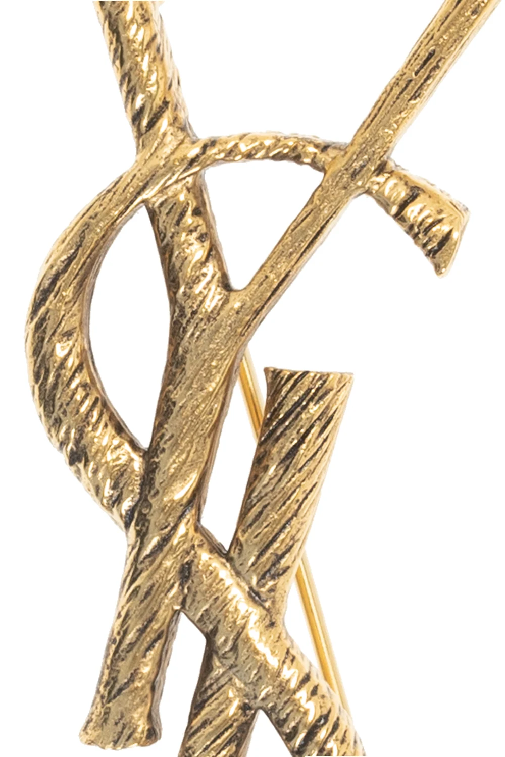 Antiqued gold-tone brooch from Saint Laurent. Made of brass, this item showcases the brand's logo.