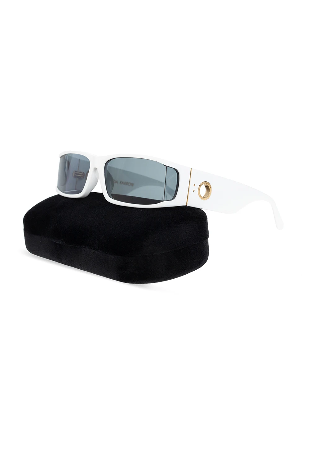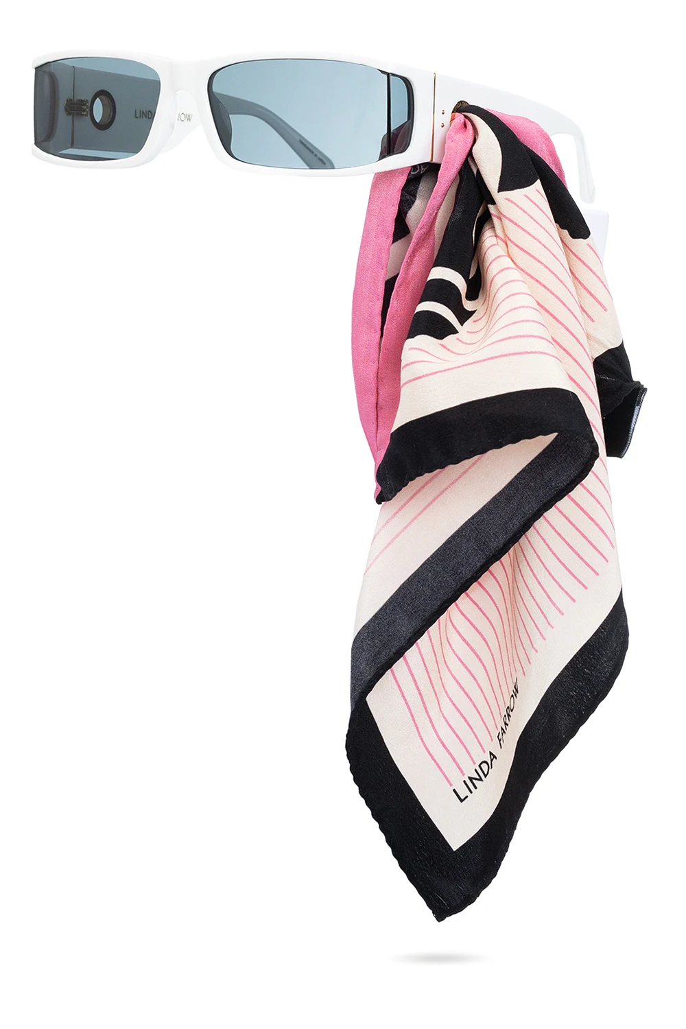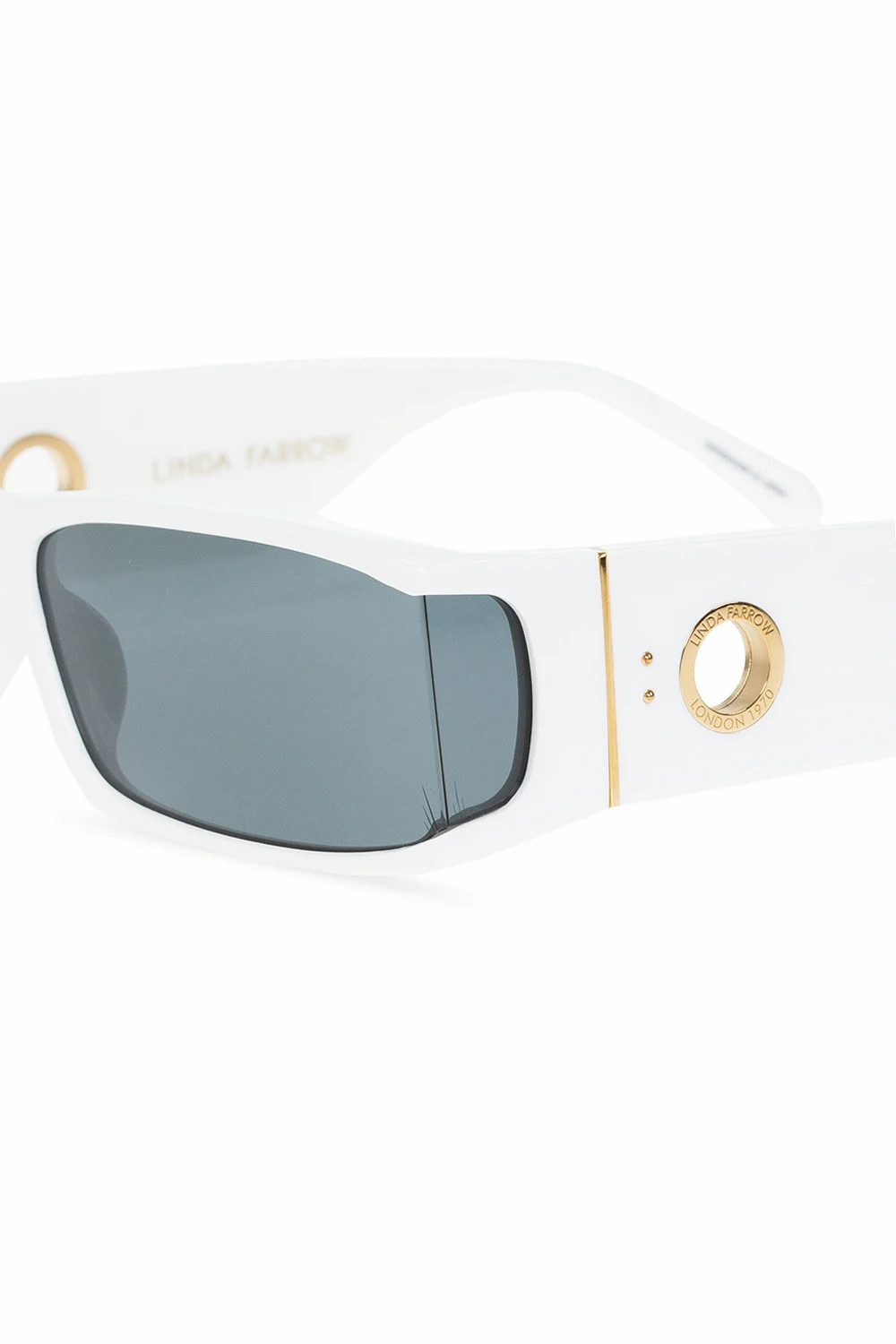 White sunglasses from Linda Farrow. This pair features an embossed logo and grey lenses with 100% UVA/UVB protection as well as gold-tone hardware and a case.