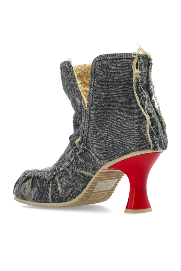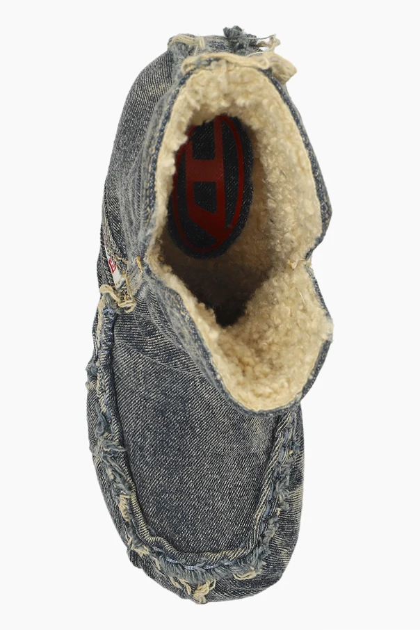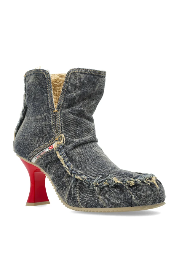 Die Absatz-Stiefeletten D-WOODSTOCK von Diesel sind ein wahres Statement in Sachen Stil und verbinden avantgardistische Ästhetik mit raffinierter Weiblichkeit. Ihre massige, abgerundete Silhouette und der hoch geschnittene Schaft bis zum Knöchel schaffen eine einzigartige, moderne Form. Der tiefe, blaue Denim mit beeindruckendem Used-Effekt und kunstvoll ausgefransten Kanten verkörpert den Geist entspannter Eleganz.