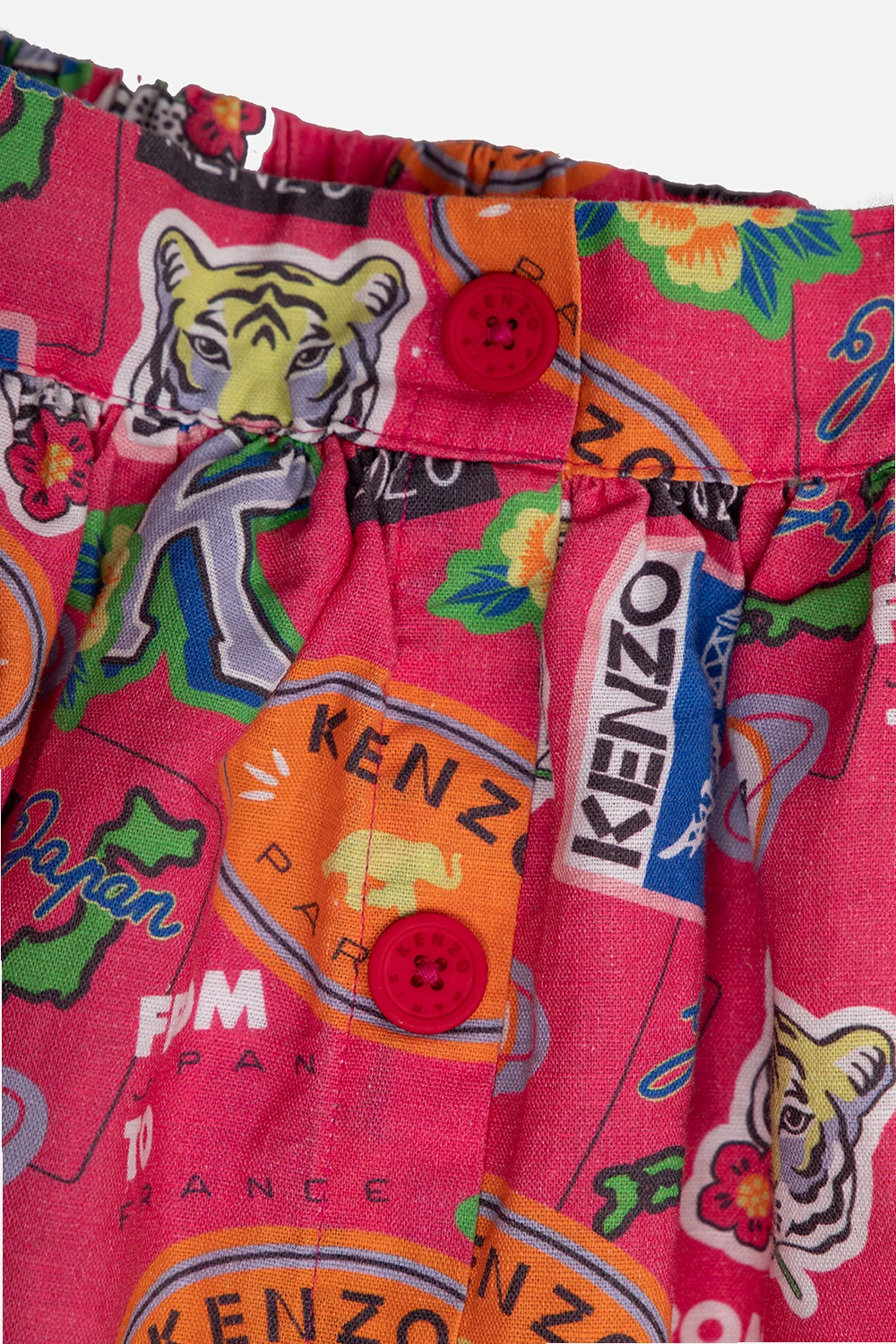 Multicolored skirt from Kenzo Kids. Made of a linen and cotton blend, this design features an elastic waistband, button fastenings and two slip pockets.