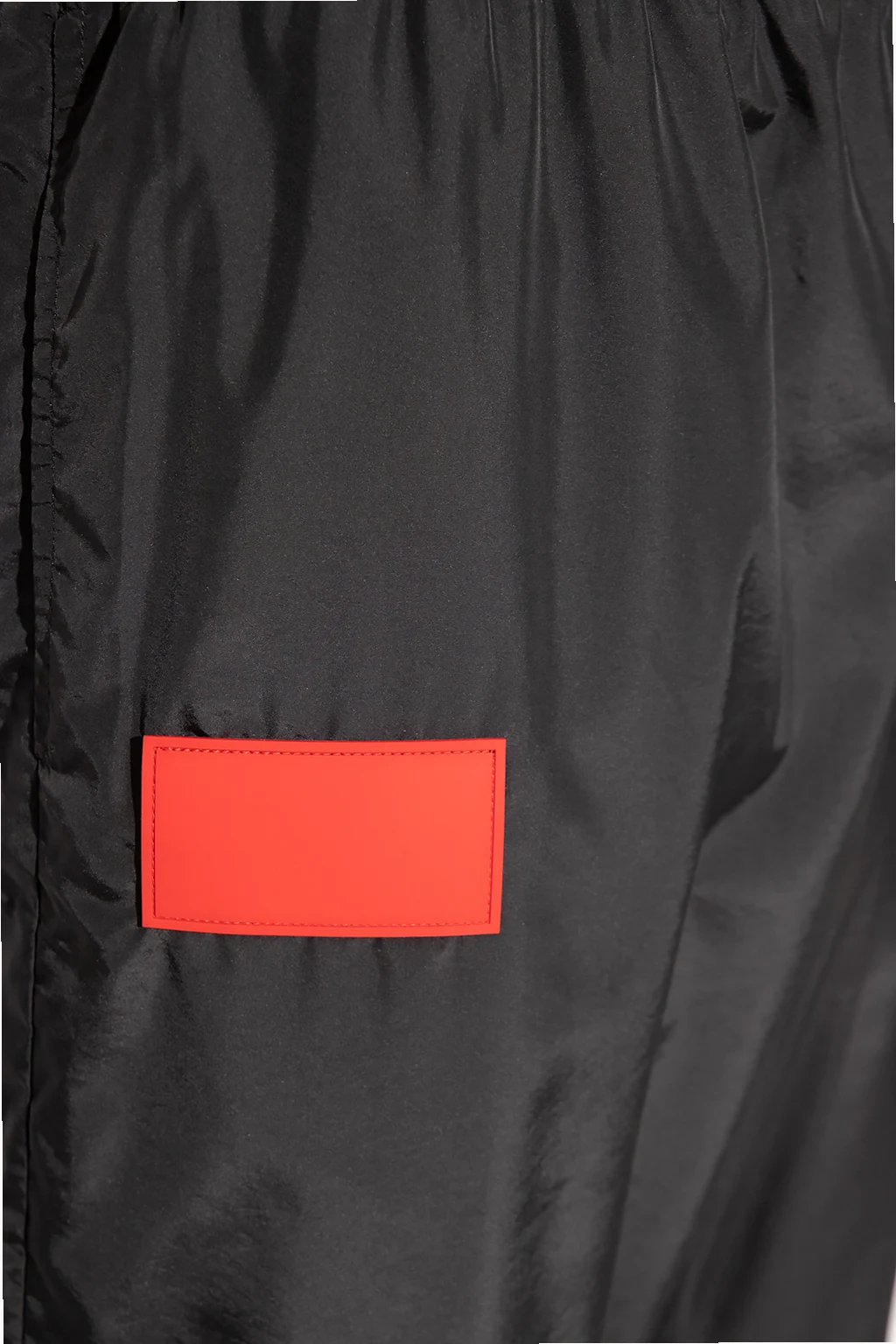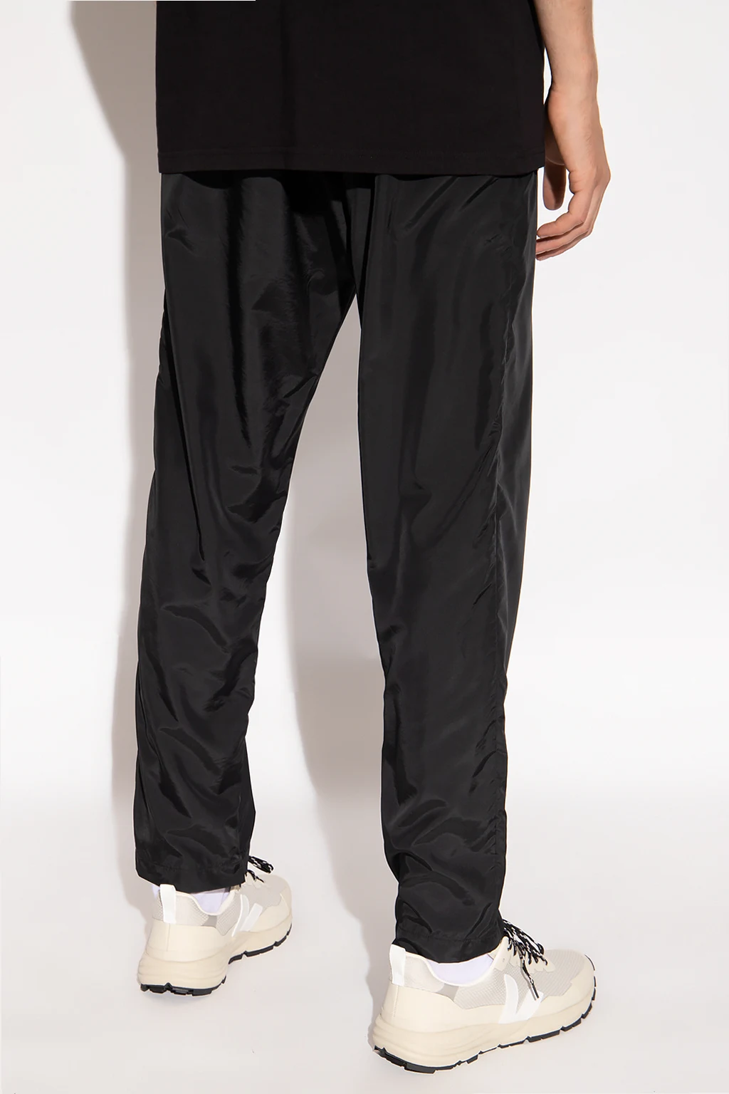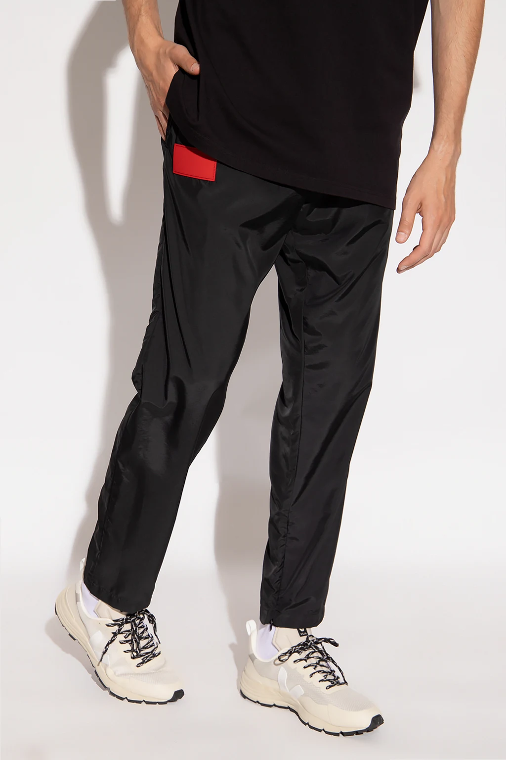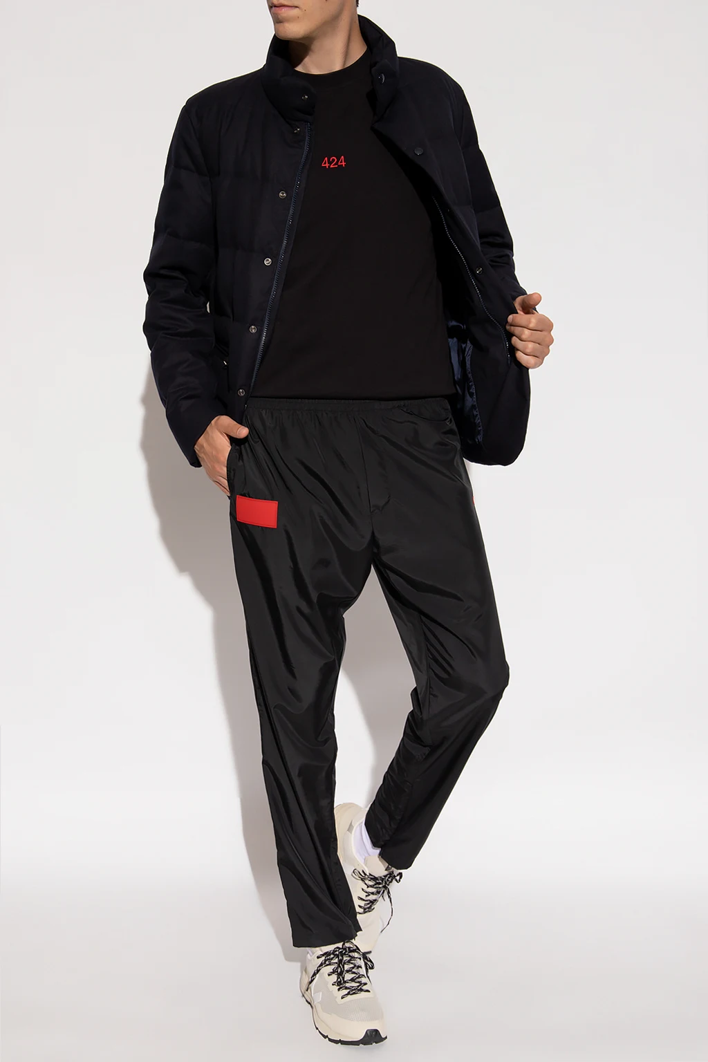 Black track pants from 424. This pair features an elastic waistband, logo embroidery, rubber patch in red, two slip pockets and long sleeves with zips.