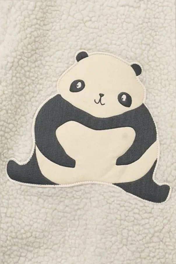 Große, auffällige Panda-Applikation macht die Jacke einzigartig