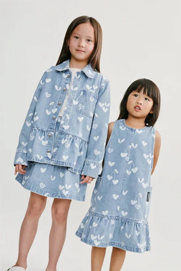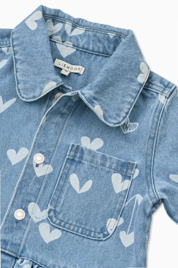 Die Kenza Jeansbluse ist eine anspruchsvolle Wahl für junge Damen, die Komfort mit erlesenem Design verbinden möchten. Aus hochwertigem, blauem Baumwoll-Jeans gefertigt, besticht sie durch ihre Strapazierfähigkeit und Weichheit im täglichen Gebrauch. Das originelle Muster aus weißen, grafischen Herzen sowie zarten Konturen mit Pfeilen ziert das gesamte Modell und verleiht dem Outfit einen einzigartigen, mädchenhaften Charakter.
