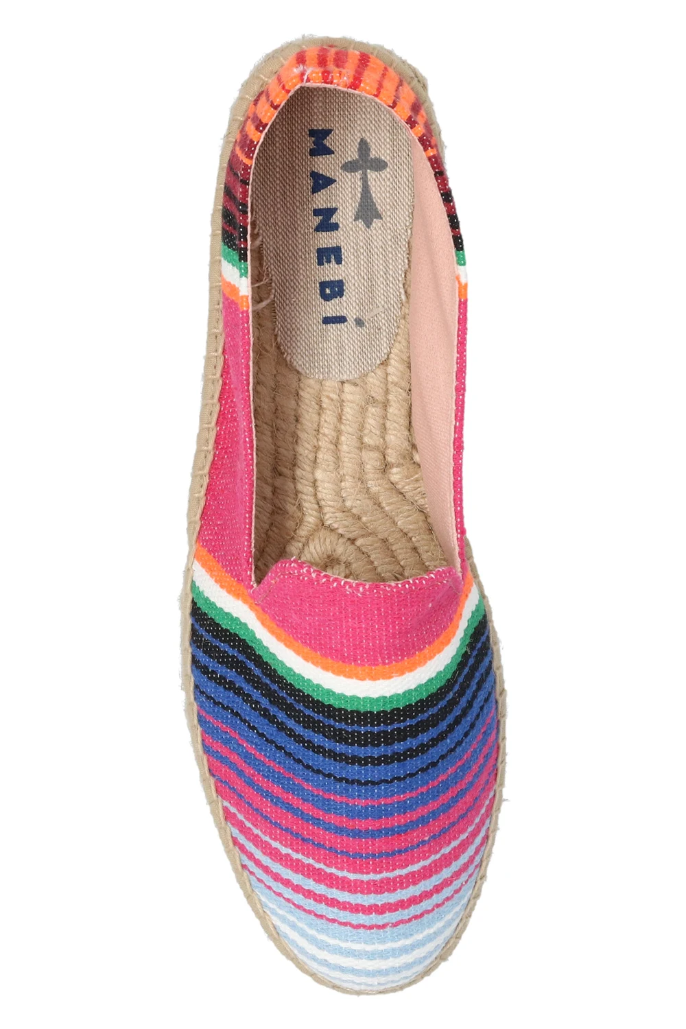 Multicoloured ‘Tulum’ espadrilles from Manebi. Crafted from cotton, this model features a stripe pattern and a natural jute sole with a thin rubber layer in grey.