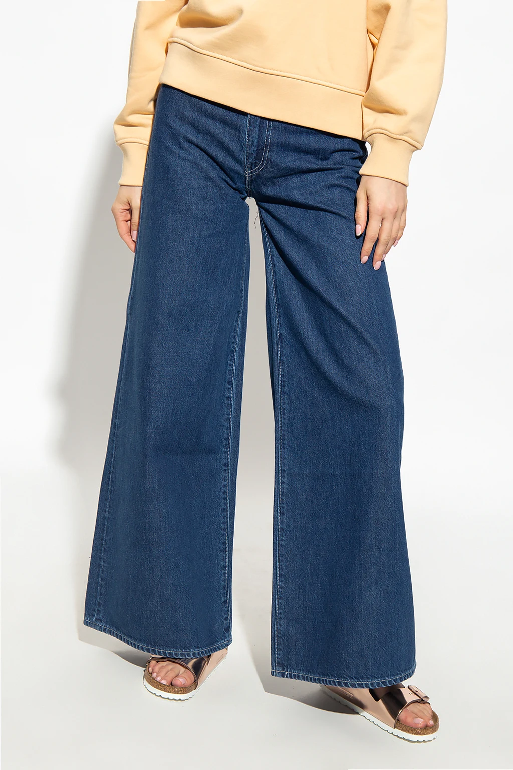 Navy blue ‘Flare Full’ jeans from Levi’s, the ‘Made & Crafted®’ collection. Cut with a high-waisted silhouette, this pair features a zip fly with a button, flared legs, classic five pockets and a back logo patch.
