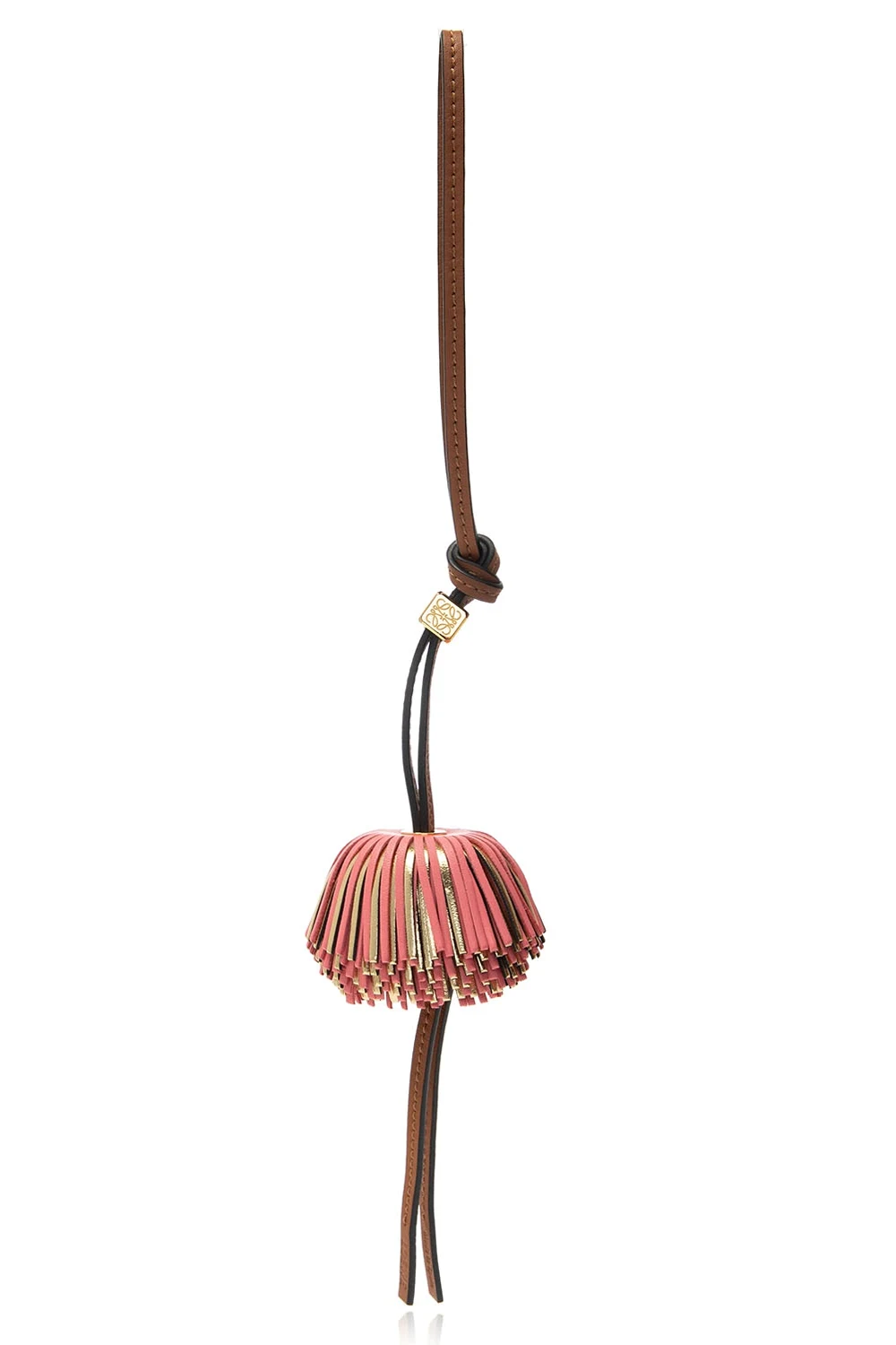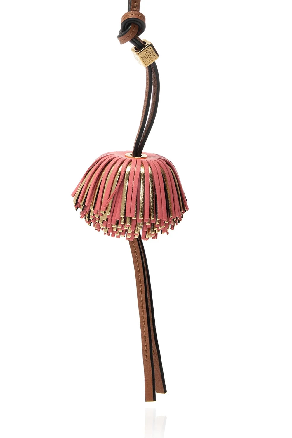 Brown charm from Loewe. Crafted from calf leather, it is complete with a metal logo appliqué and tassels in gold-tone and orange.