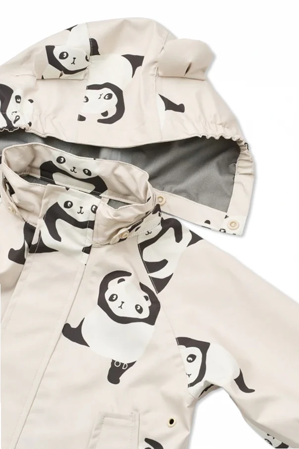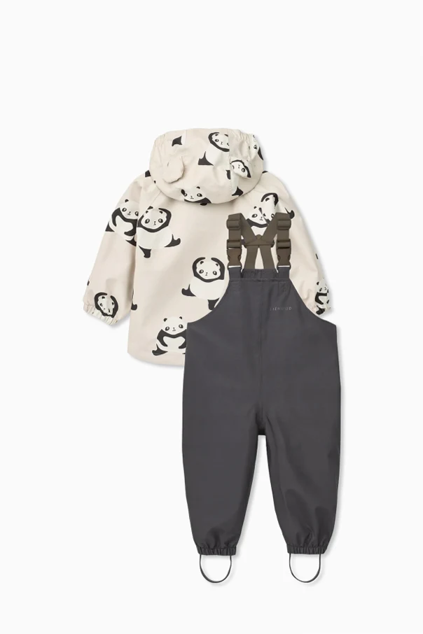 Das Regen-Set „Manu” begeistert mit einer eleganten Interpretation klassischer Kinderbekleidung. Die Jacke in cremefarbener Nuance, verziert mit einem wiederkehrenden, kontrastreichen Panda-Motiv, zieht mit ihrer subtilen Ästhetik und dem fröhlichen Design alle Blicke auf sich. Das außergewöhnlich weiche und dennoch wasserdichte Material überzeugt durch seine Funktionalität und bietet Schutz, selbst an den launischsten Tagen.
