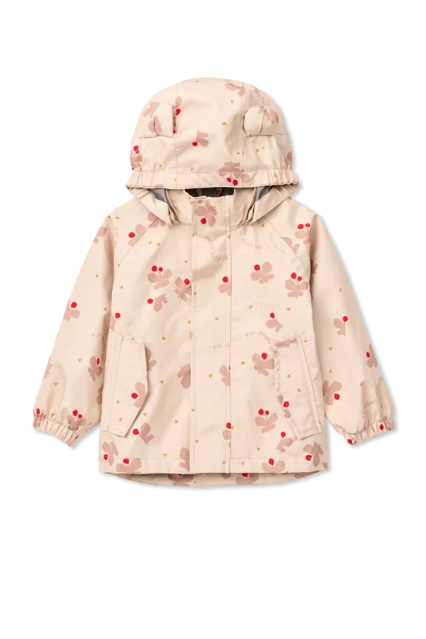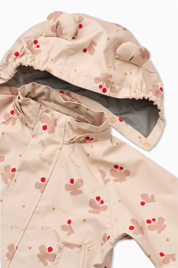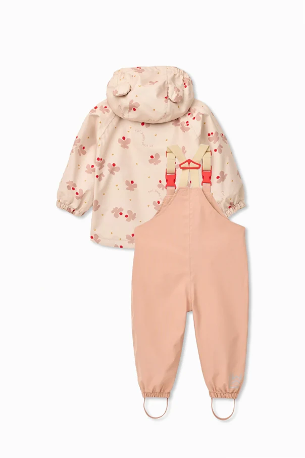 Das Regen-Set Manu von Liewood ist eine außergewöhnliche Wahl für die jüngsten Entdecker, die Komfort und raffinierte Ästhetik schätzen. Die Jacke mit schlichtem Schnitt, veredelt durch dekorative Öhrchen an der Kapuze und aufgesetzte Taschen mit Druckknöpfen, begeistert mit einem Muster aus pastellfarbenen Pflanzen, zarten Blumen und kleinen Herzen, die harmonisch in den kindlichen Stil passen. Die hoch geschnittene Hose, ausgestattet mit breiten, verstellbaren Trägern mit Kunststoffschnallen, schützt dank der elastischen Bündchen und praktischen Fußriemen hervorragend vor Feuchtigkeit.