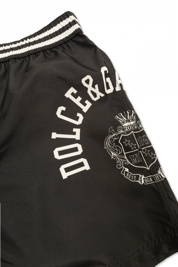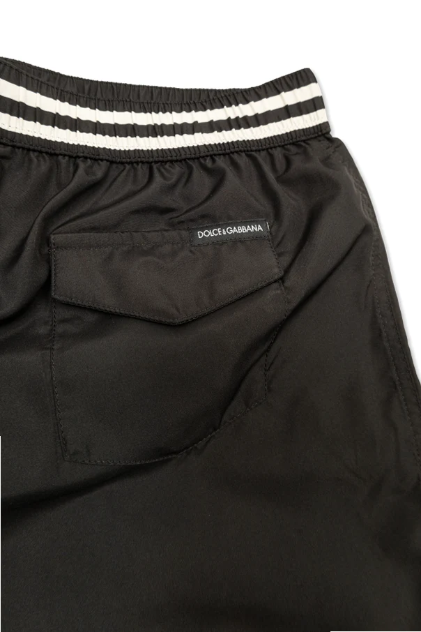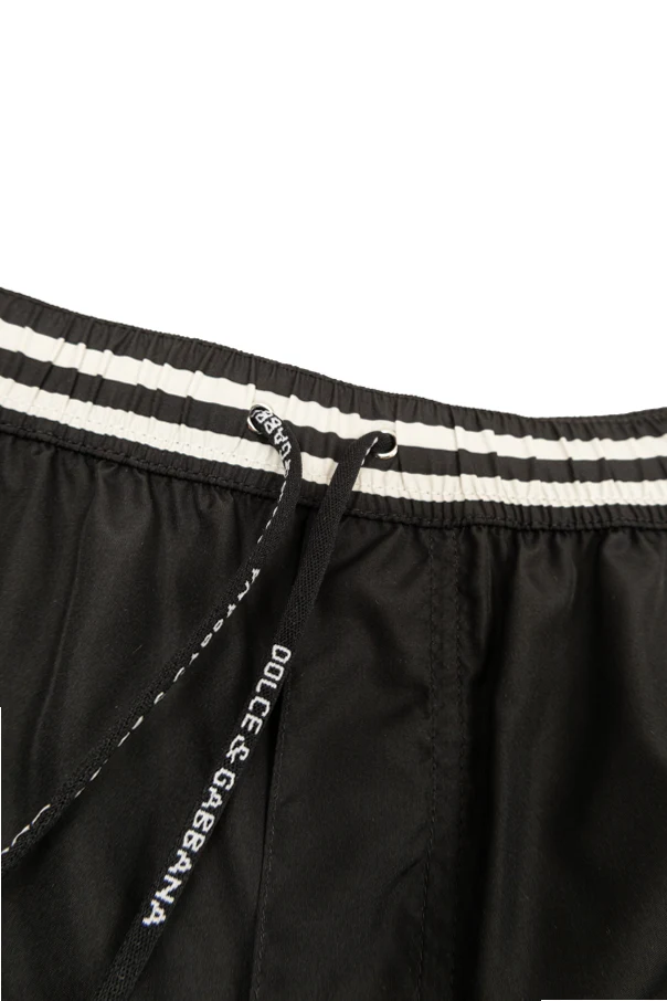 Prägnante Akzente wie der große, gebogene Schriftzug „DOLCE&GABBANA“ sowie das dekorative Wappen vorne, der Aufnäher hinten und die signierten Kordeln verleihen diesem Modell einen unverwechselbaren, luxuriösen Charakter. Der elastische Bund sorgt für eine perfekte Passform und unterstreicht den Tragekomfort.