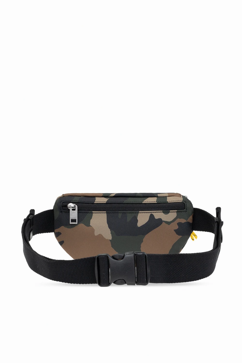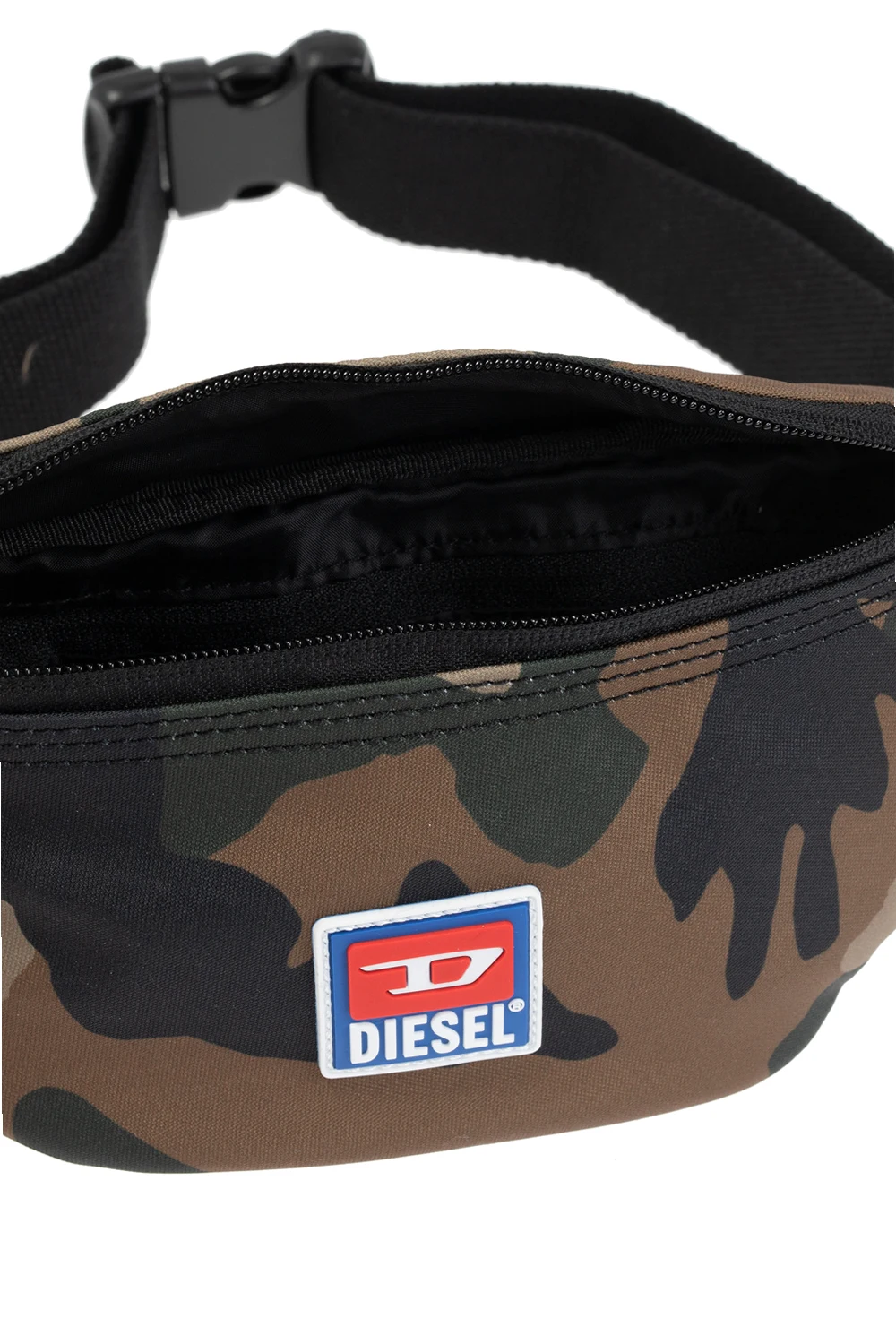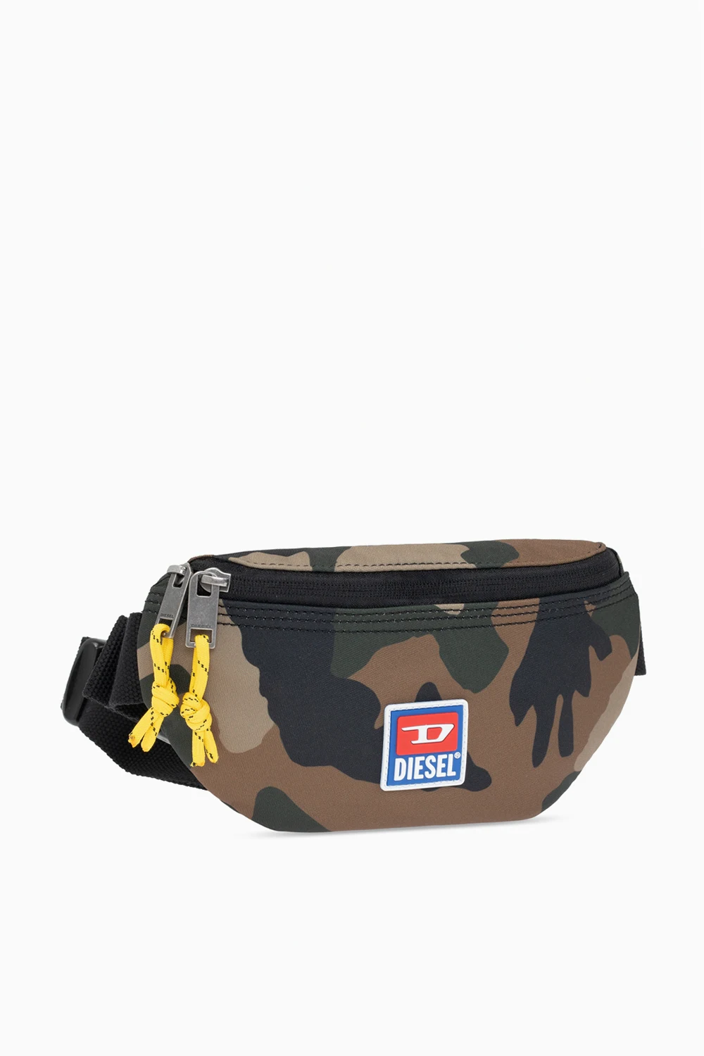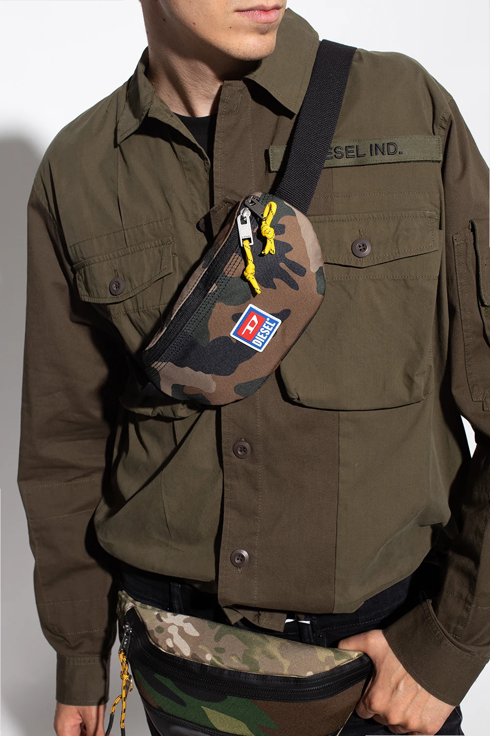 Brown, black and green ‘Byga’ camo belt bag from Diesel. Emblazoned with a rubber logo patch, this design features a two-way zip fastening, a zip pocket on the back, an adjustable strap and one internal compartment with one zip pocket.