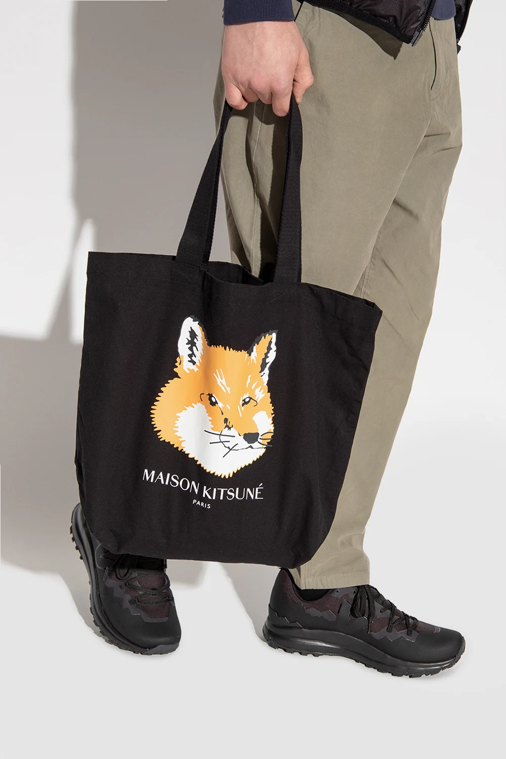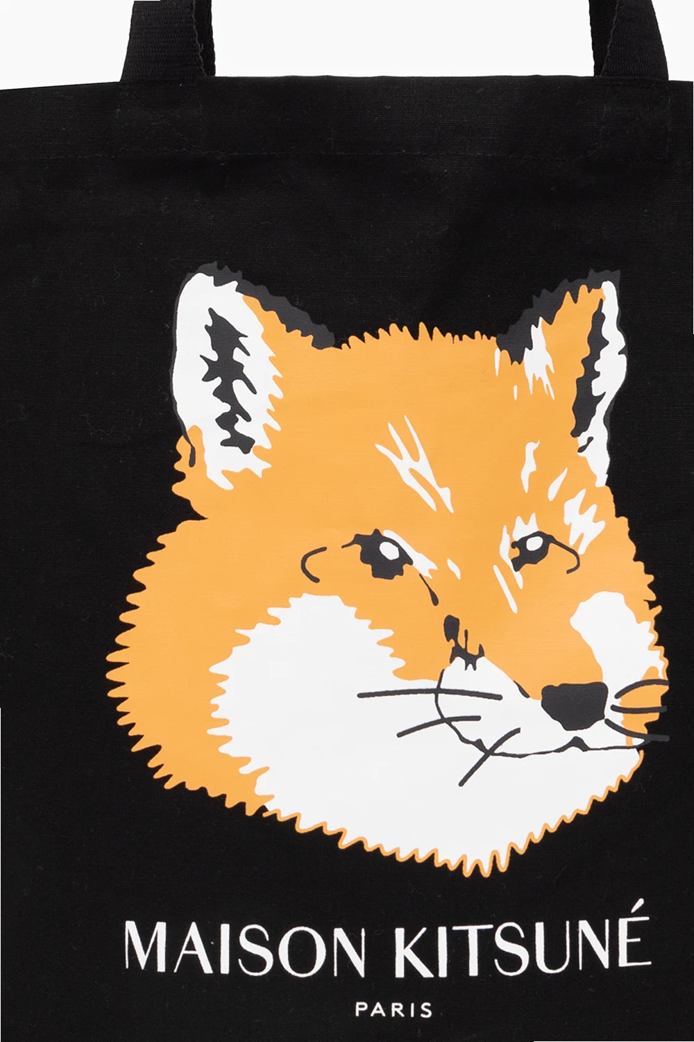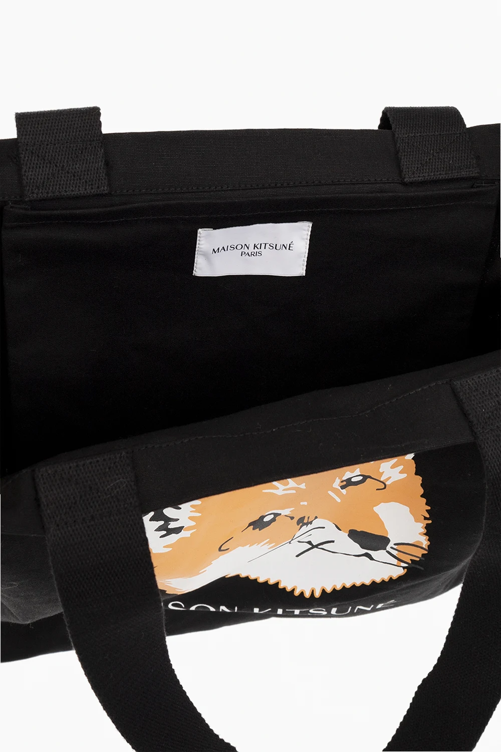 Black shopper bag from Maison Kitsune. Crafted from cotton, this design showcases a graphic print with the brand's logo, two half-round handles and one internal compartment with a slip pocket.