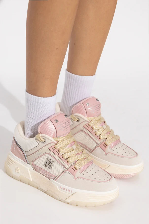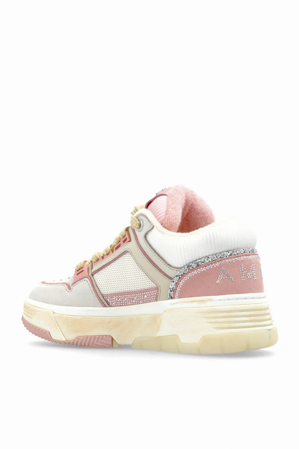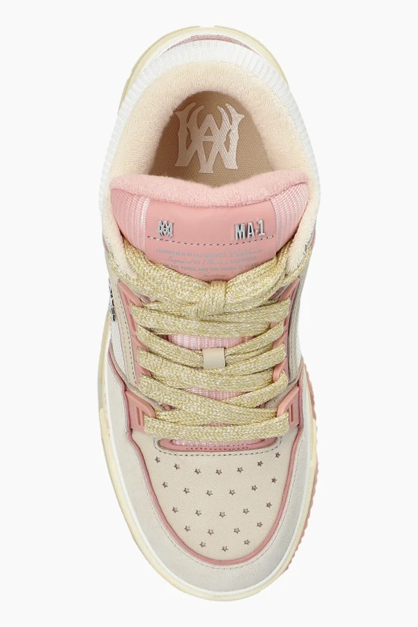 Entdecken Sie die einzigartige Harmonie von modernem Design und zeitloser Eleganz mit den Sportschuhen CRYSTAL MA-1 der Marke Amiri. Dieses Modell begeistert durch sein hohes Profil und die markante Silhouette, die perfekt den exklusiven Charakter moderner Streetwear widerspiegeln. Die dominante rosa Farbgebung in einem pastelligen Ton harmoniert dezent mit cremeweiß sowie edlen beigefarbenen und grauen Akzenten.