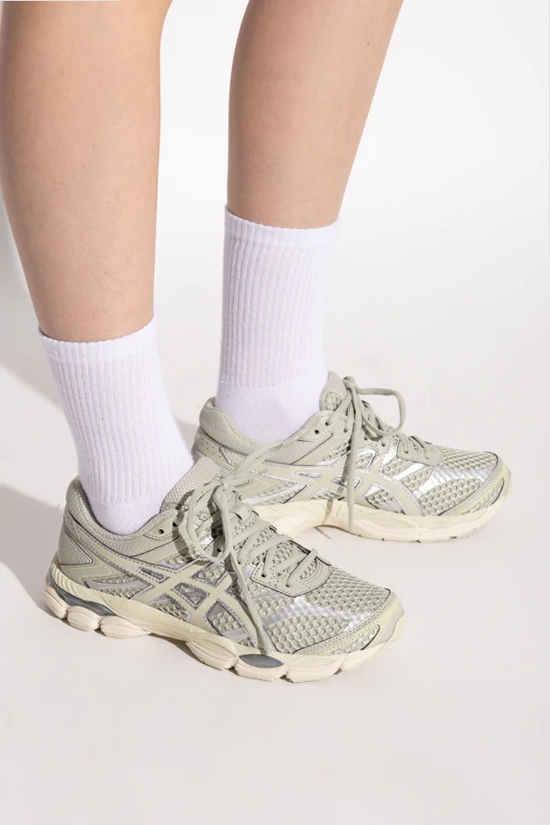 Der sorgfältig geformte, niedrige Schaft aus atmungsaktivem Mesh-Gewebe, verstärkt mit synthetischen und textilen Elementen, garantiert Leichtigkeit und ausgezeichnete Belüftung – selbst bei intensiver Aktivität. Geometrische Nähte sowie das charakteristische ASICS-Motiv in einem hellgrauen, glänzenden Farbton sind das Markenzeichen dieses einzigartigen Modells.