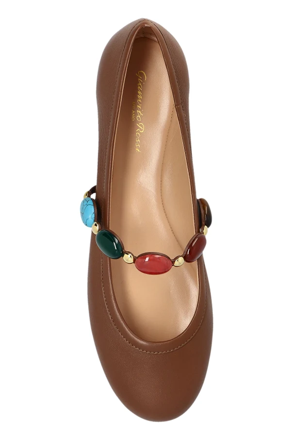 Ein charakteristisches Merkmal dieser Schuhe ist der Mary Jane Riemen , verziert mit großen, bunten Steinen in Blau-, Grün- und Rottönen, die den Schuhen einen einzigartigen Charme verleihen. Sowohl die Außenschicht als auch das Innere der BALLET FLATS sind aus hochwertigem Leder gefertigt, was kompromisslosen Komfort beim Tragen gewährleistet. Die Gummisohle garantiert Haltbarkeit und Bequemlichkeit im täglichen Gebrauch.