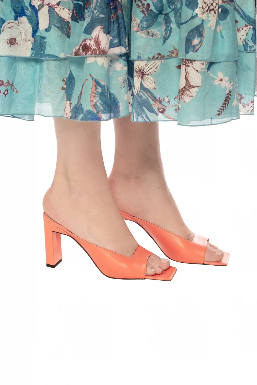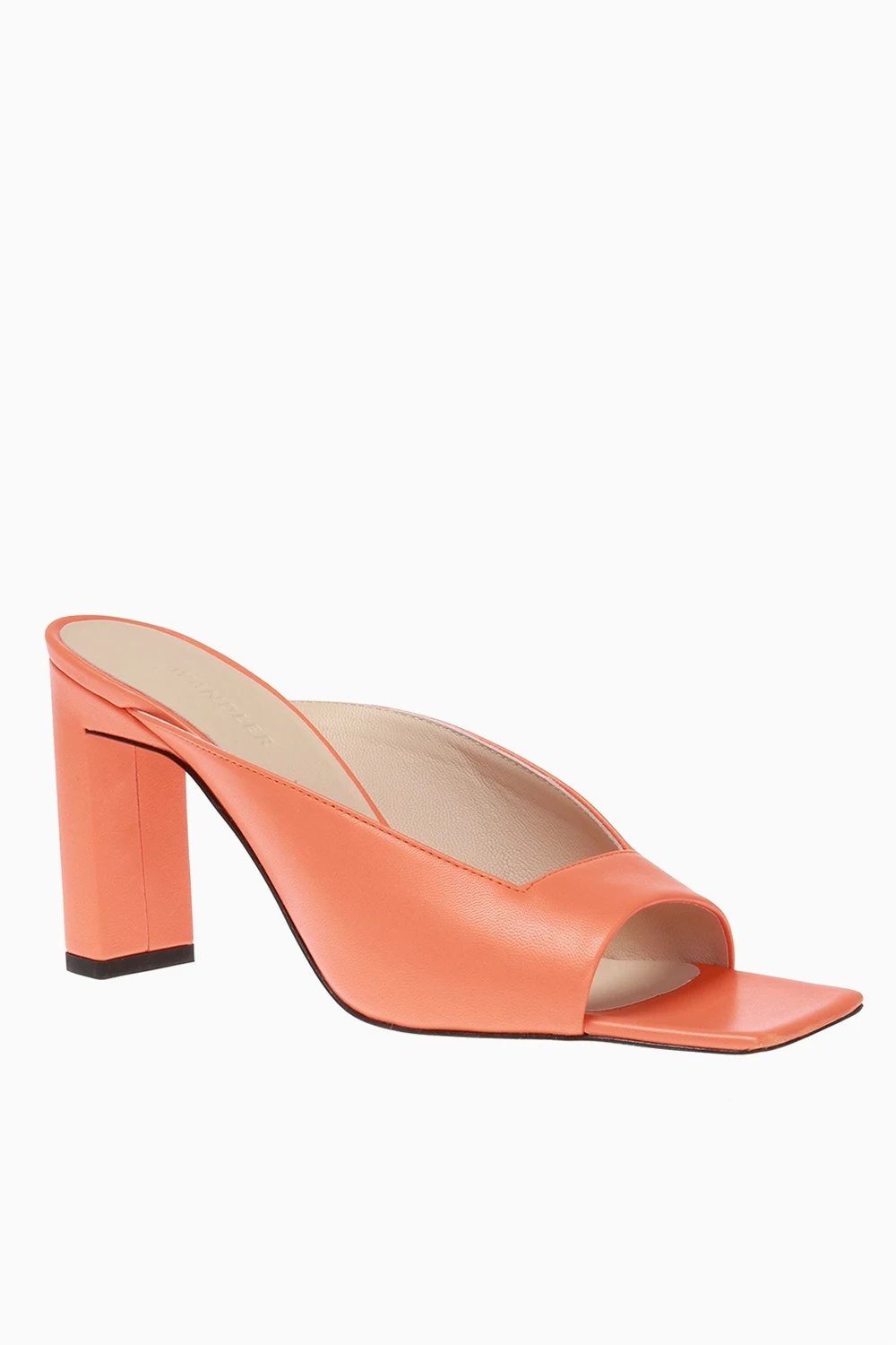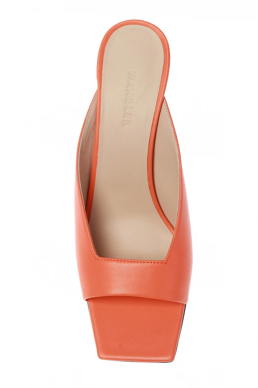 Orange ‘Isa’ heeled mules from Wandler. Made of lamb leather. Cream leather sole.