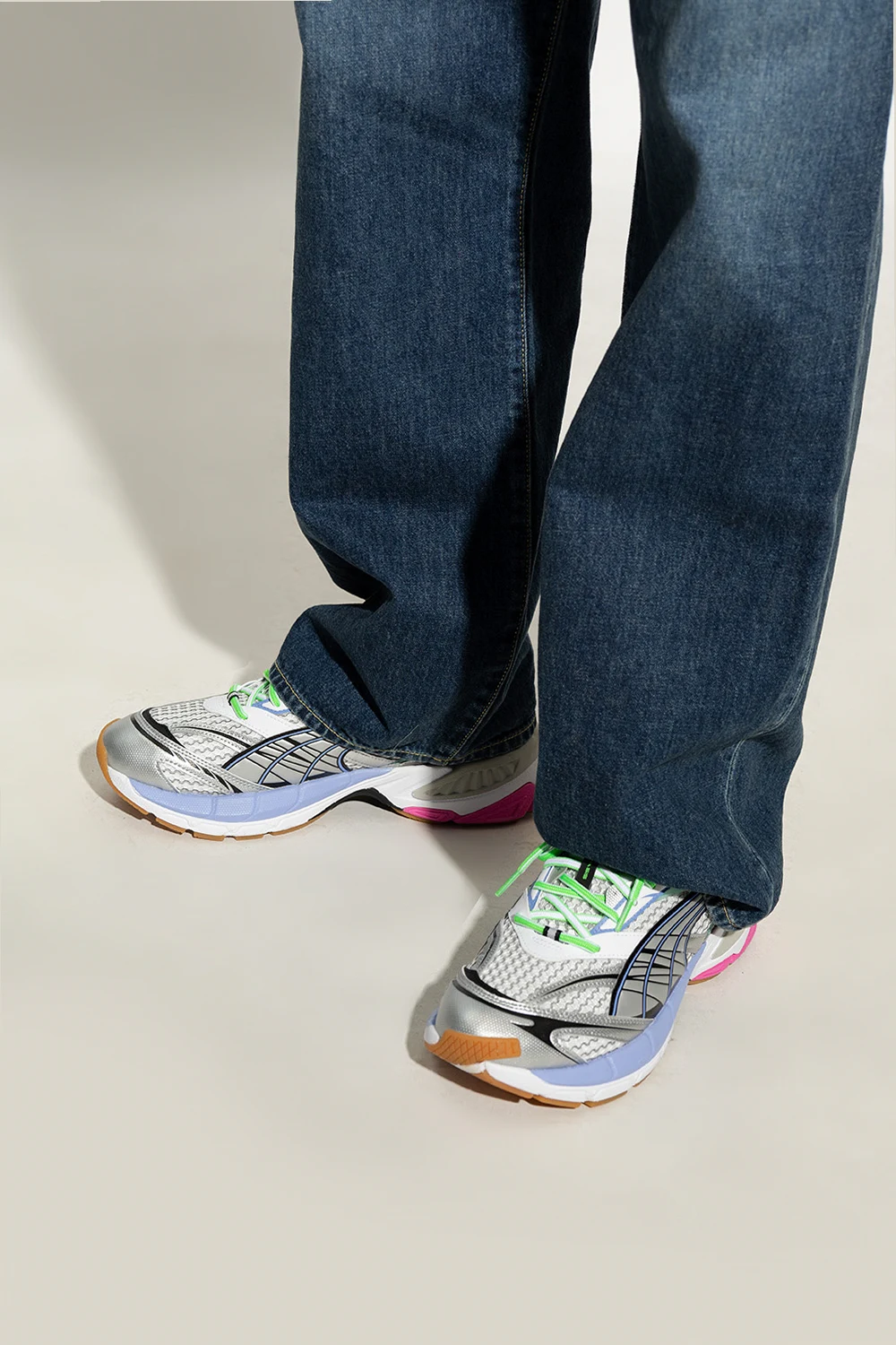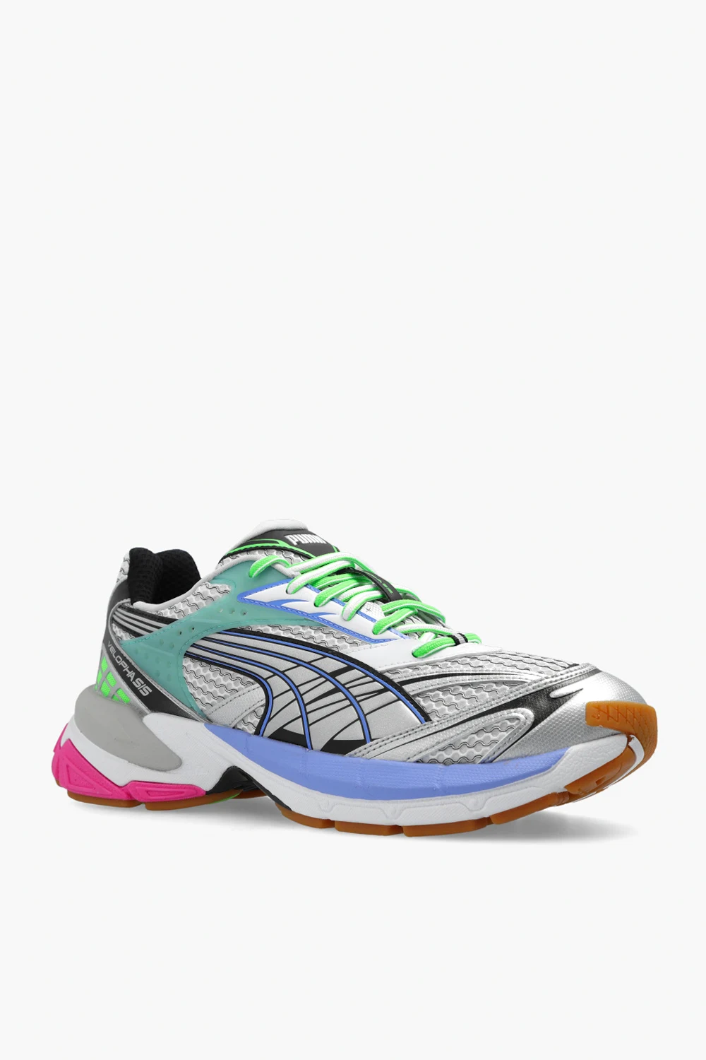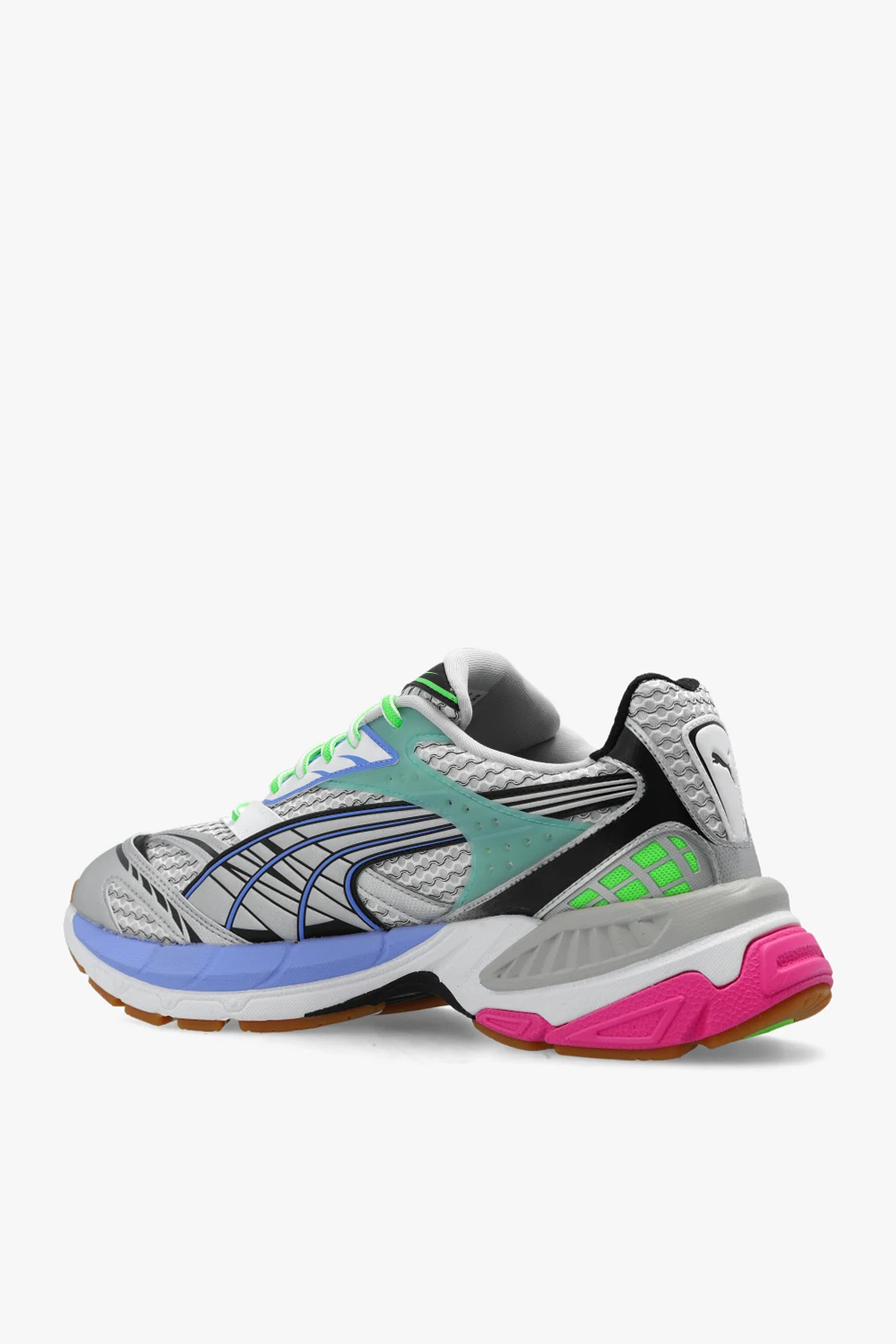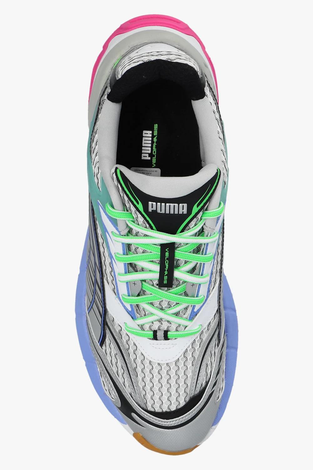 Multicoloured ‘Velophasis Phased’ sneakers from Puma. Crafted from fabric and vegan leather, this lace-up model sits on a colourful rubber sole and features mesh overlays, a step-in comfort sockliner designed to provide soft cushioning, a round, soft toe and a logo-embossed tongue.
