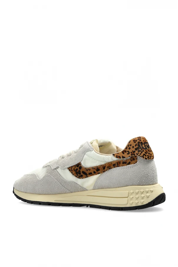 Das Obermaterial aus atmungsaktivem Mesh-Gewebe und luxuriösem Veloursleder bildet eine besonders edle Kombination. Ein markantes, tierisch inspiriertes Paneel in Leopardenmuster, das dezent die Seiten und die Rückseite des Schuhs ziert, zieht die Blicke auf sich. Durchdachte Details wie die „AUTRY“- und „REELWIND“-Signaturen auf der Zunge sowie an der Seite unterstreichen die Authentizität dieses Modells.