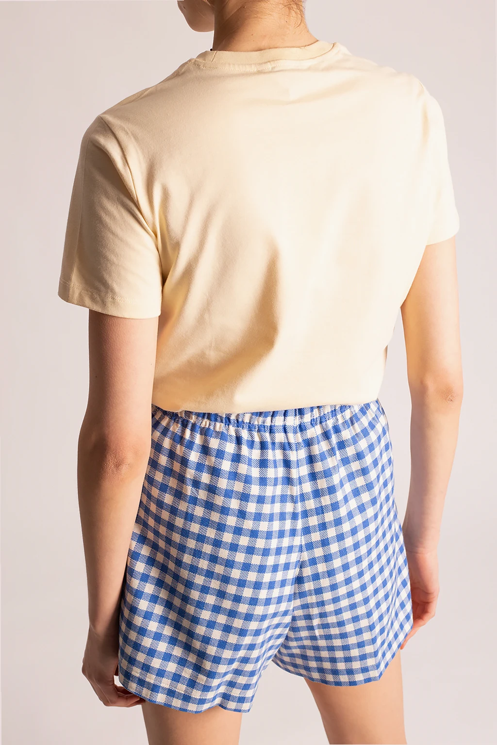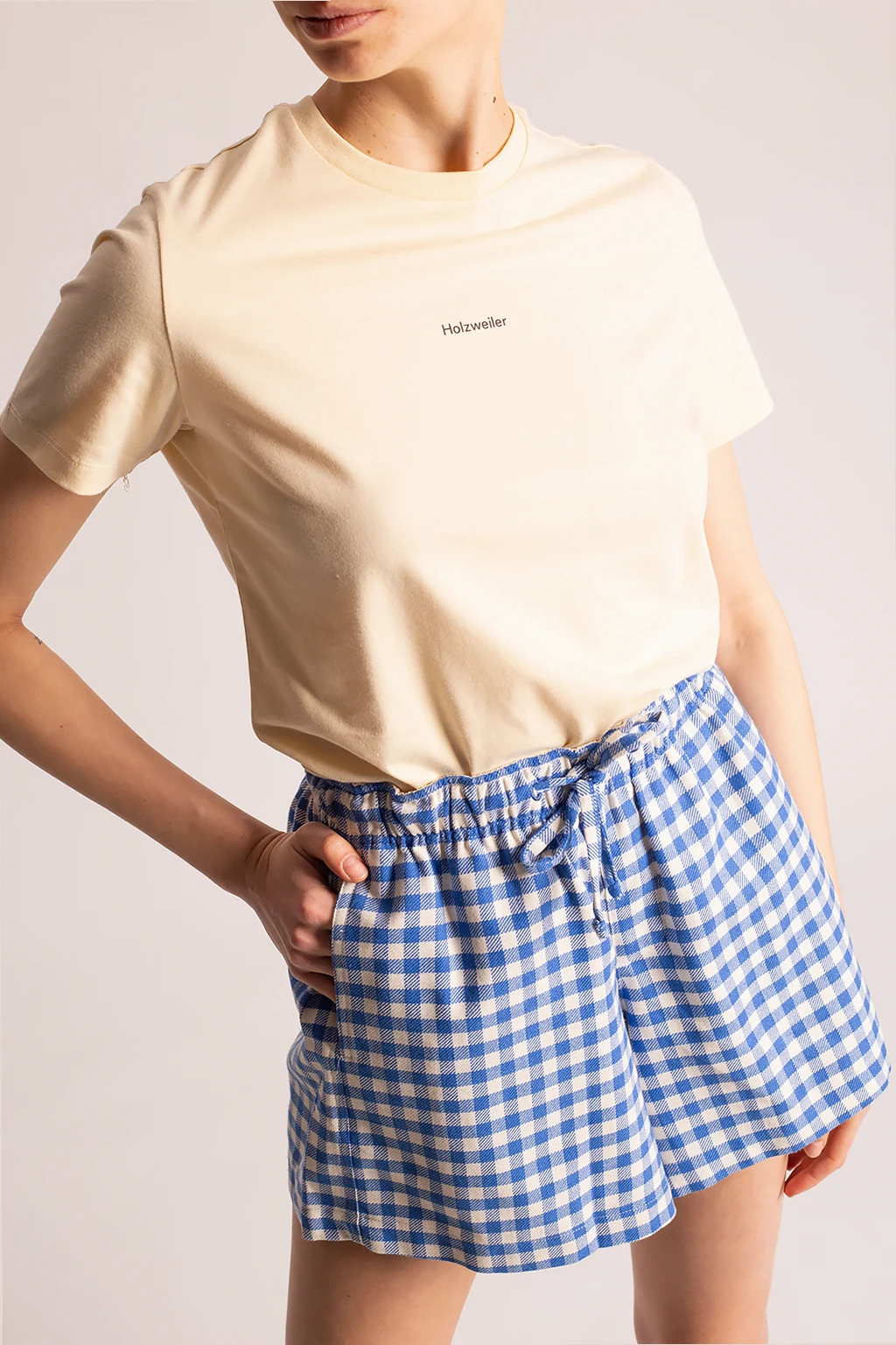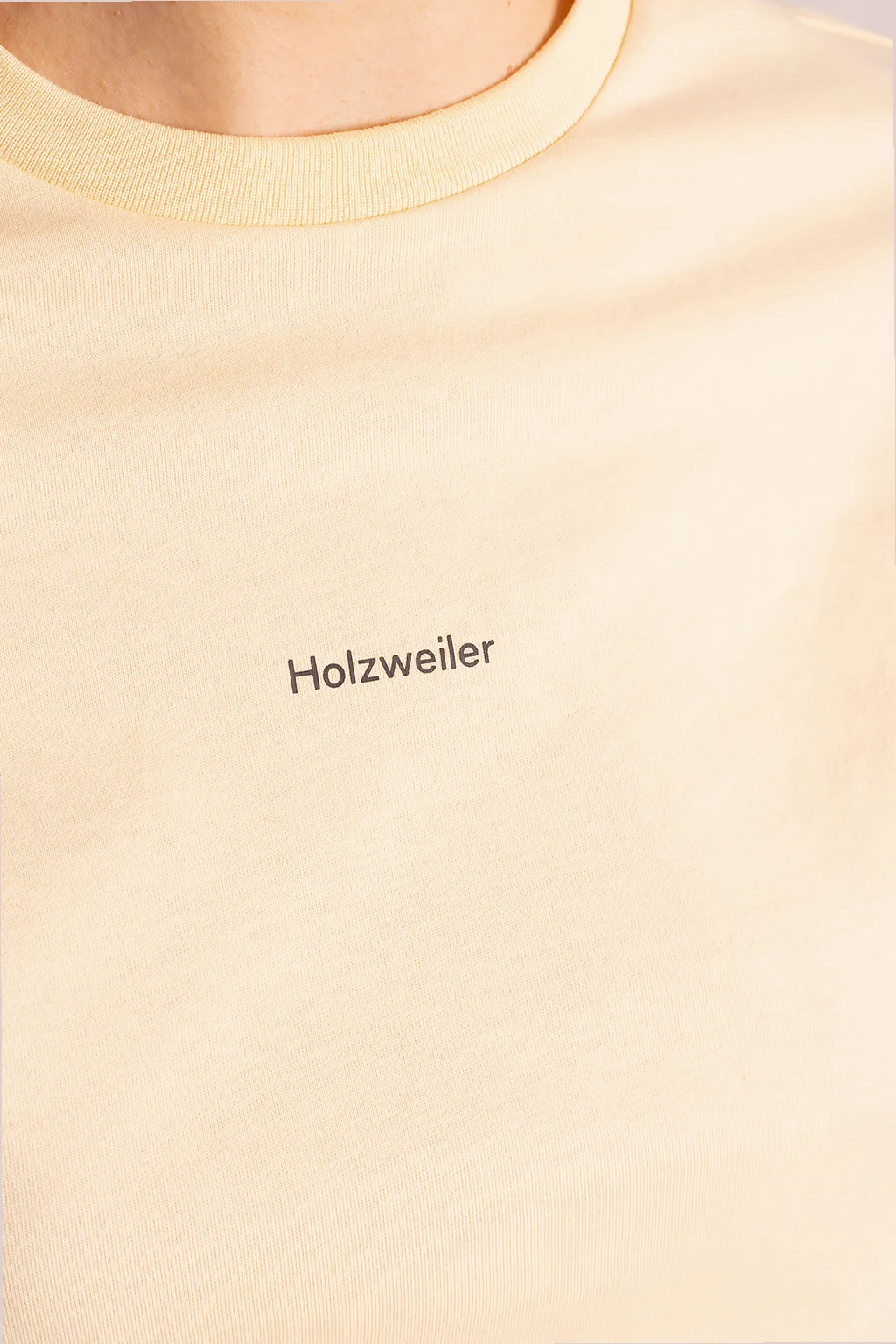 Light yellow crewneck T-shirt from Holzweiler. Made from organic cotton, this style showcases a black graphic print with the brand's logo.