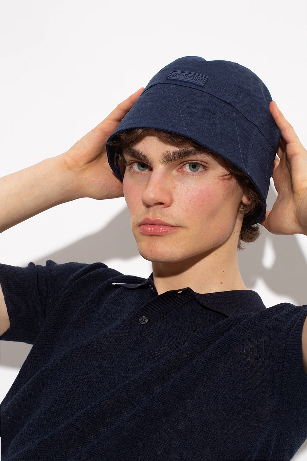 Navy blue ‘Le Marino’ bucket hat from Jacquemus. Made of cotton canvas, this item features a straight brim silhouette with a rubber logo patch.