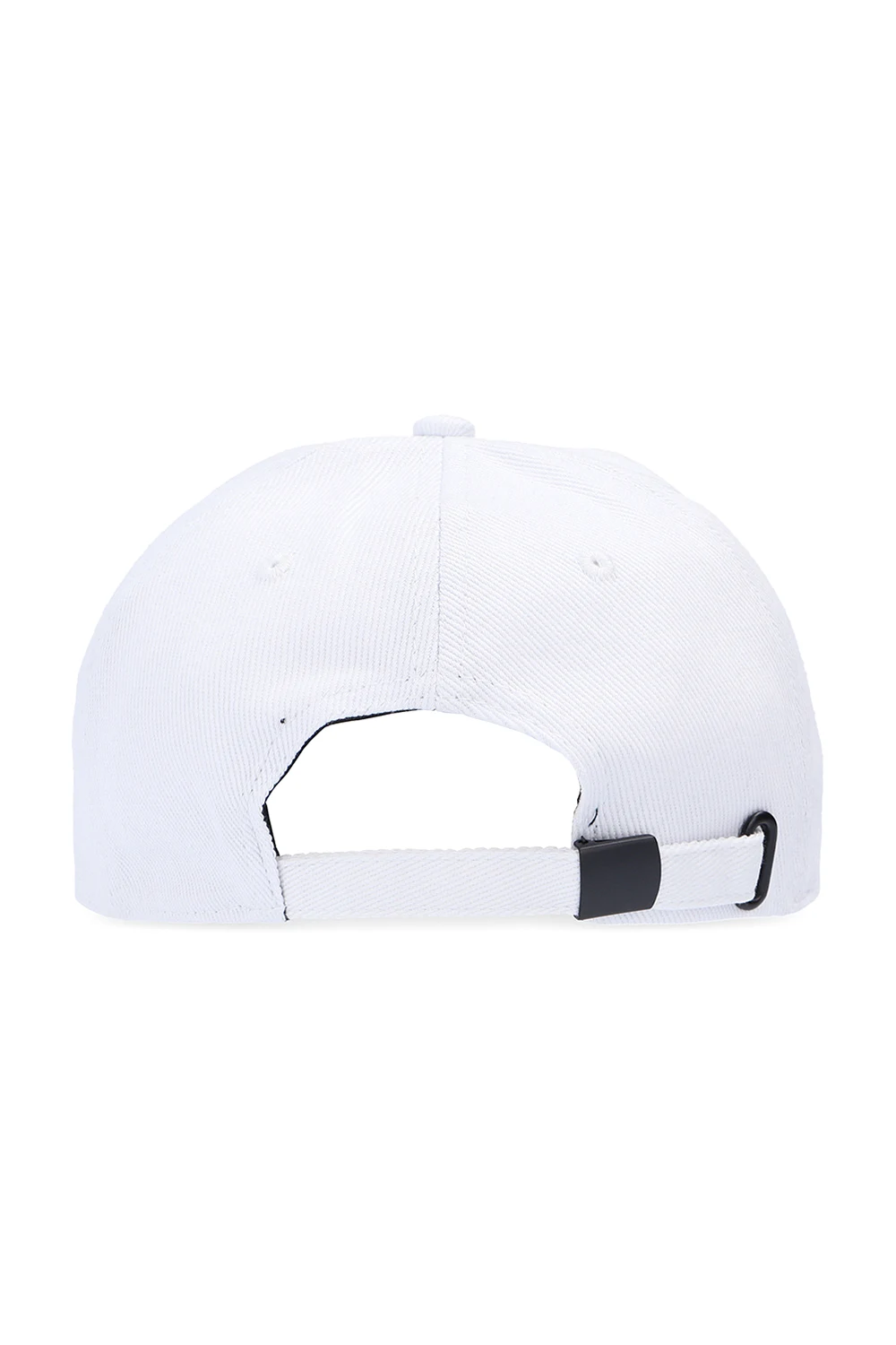 White baseball cap from Versace Jeans Couture. Embroidered at front with the brand's logo in black, this item features a buckle adjuster on the back.