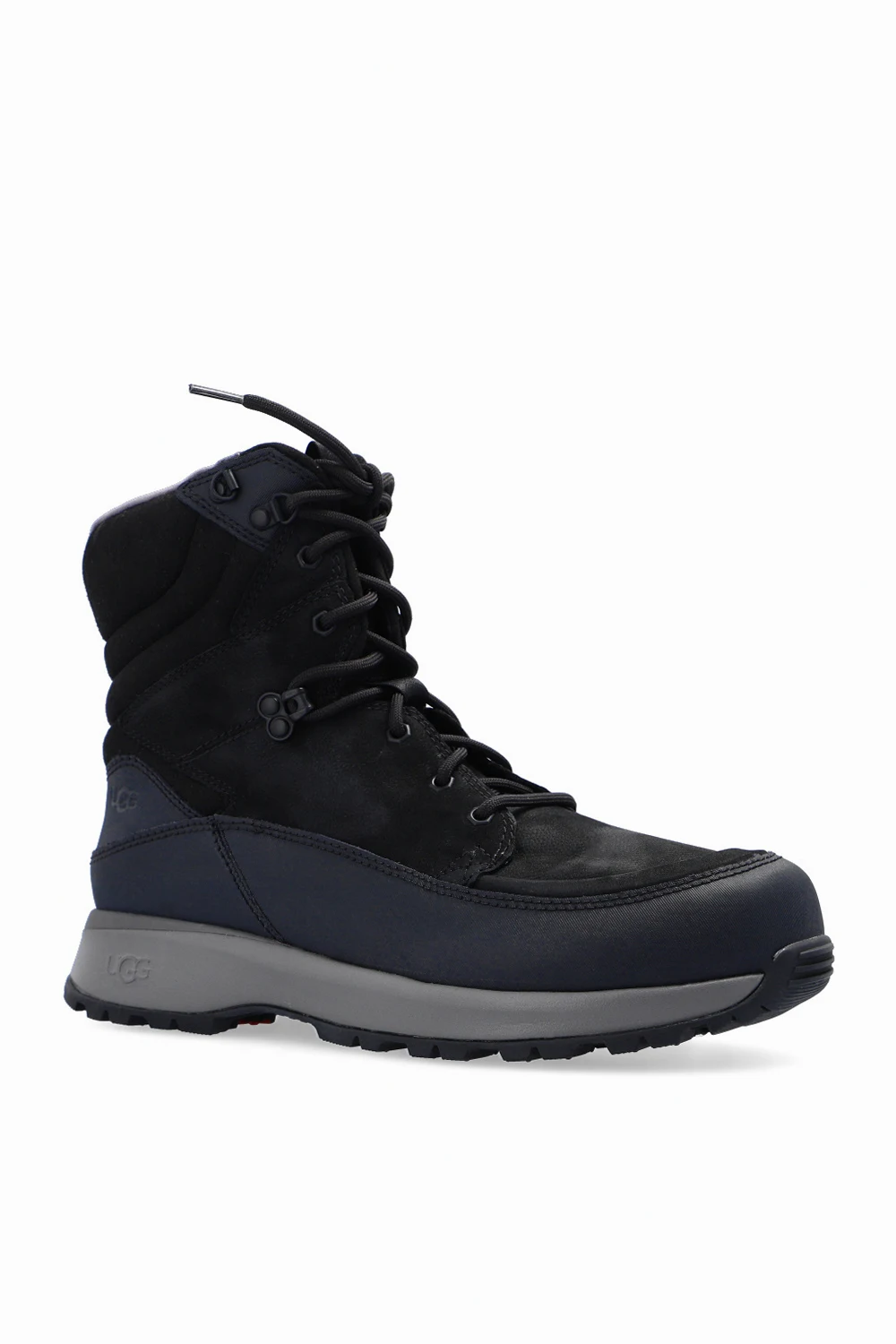 Black ‘Emmett’ shoes from UGG. Made of leather, this waterproof pair is trimmed with fabric and complete with a logo detail and a rubber White Spider Rubber sole for increased traction. Temperature rating: up to -32°C.