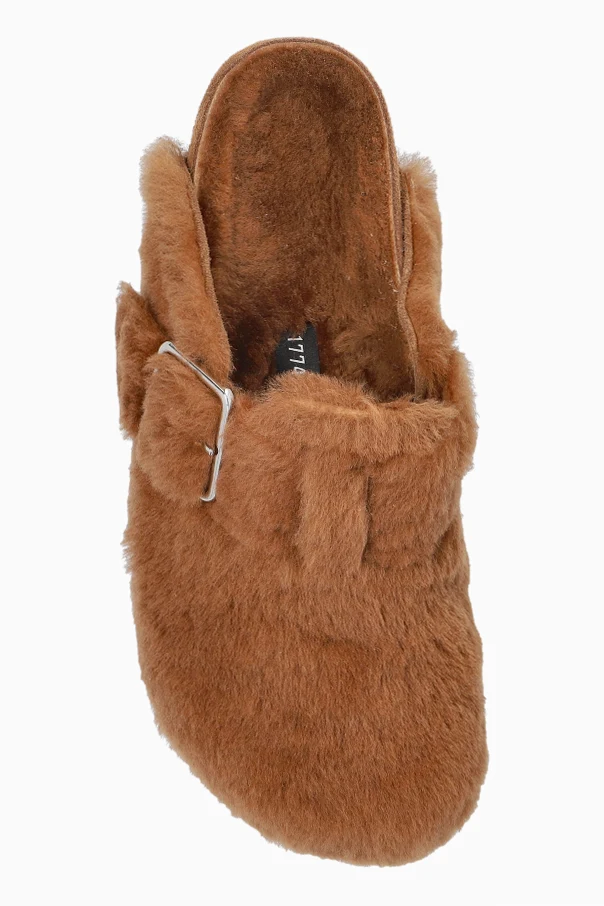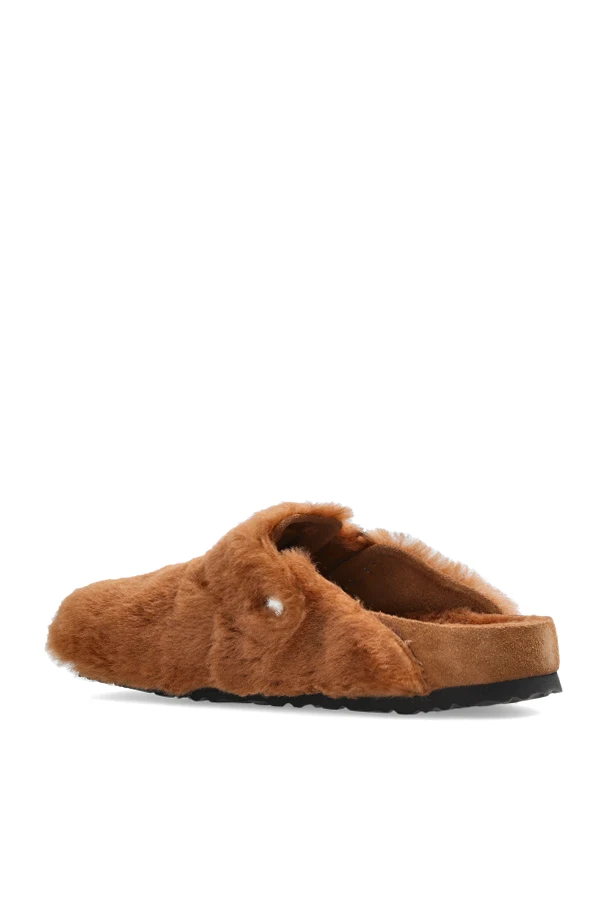 Boston 1774 Shearling Pantoletten von Birkenstock 1774 sind eine äußerst raffinierte Wahl für Kenner zeitloser Eleganz. Der stark geschlossene Schnitt , der eine geschlossene Vorderpartie mit einer offenen Ferse verbindet, harmoniert perfekt mit dem breiten Riemen, der mit einer silberfarbenen Schnalle verziert ist. Dies bietet nicht nur eine präzise Verstellmöglichkeit, sondern auch einen einzigartigen, visuellen Akzent.