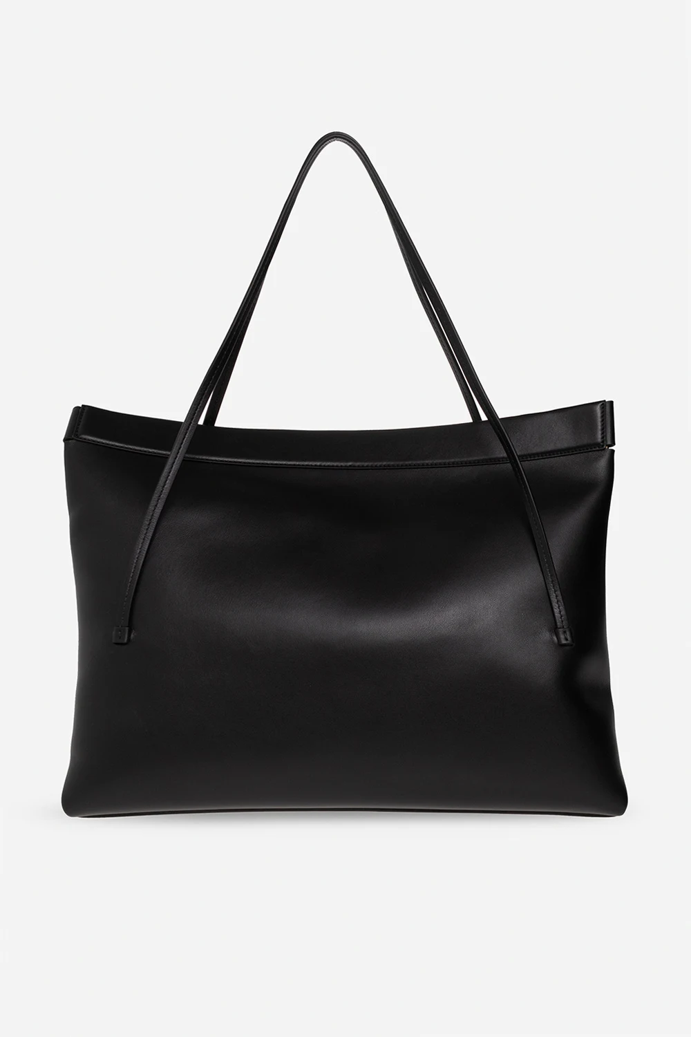 Black ‘Joanna Big’ shoulder bag from Wandler. Crafted from soft, vegetable-tanned calf leather from sustainable sources, this design secures with magnetic snaps and features a gold-tone logo print on the front, two long handles and one internal compartment.