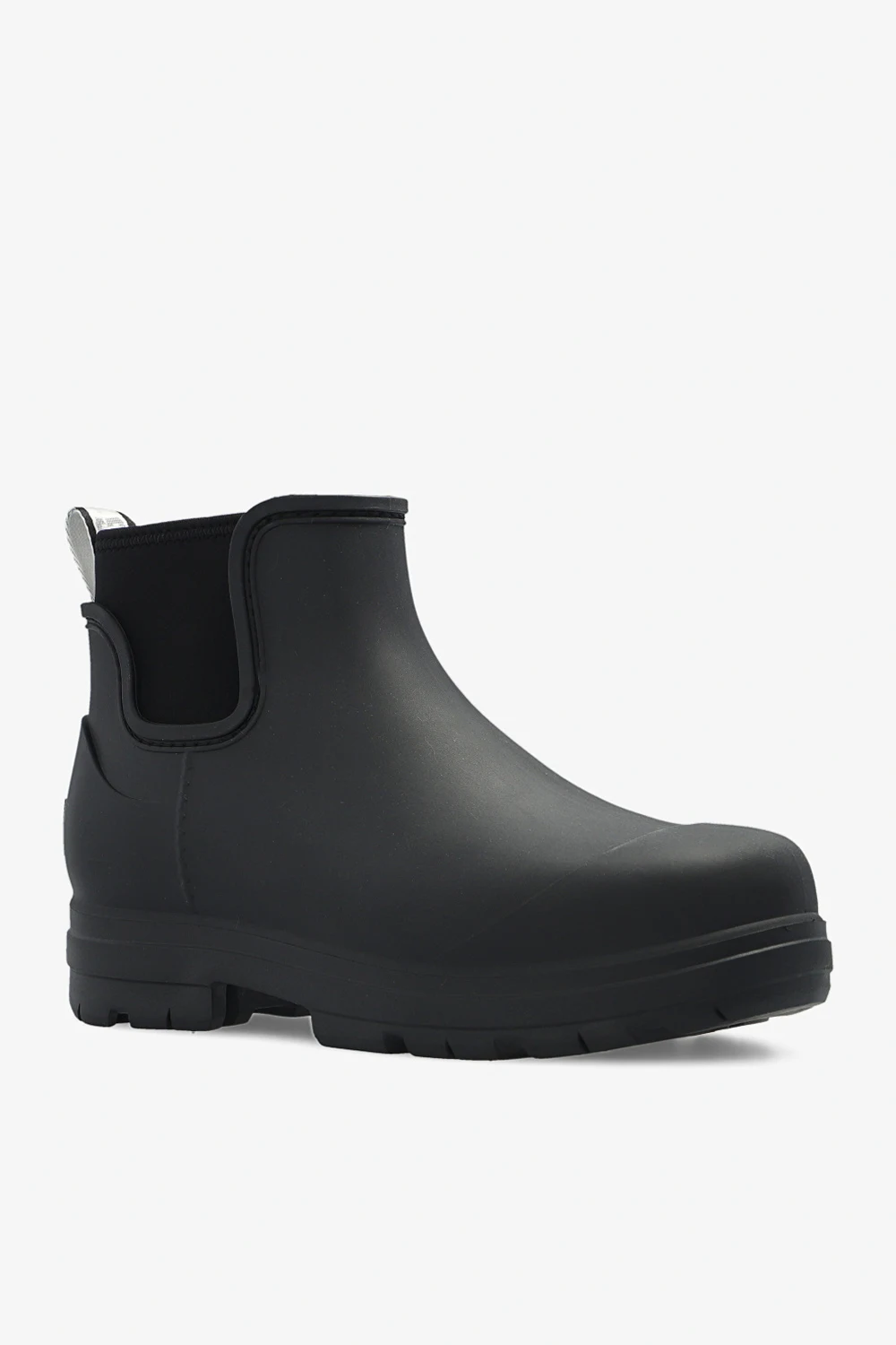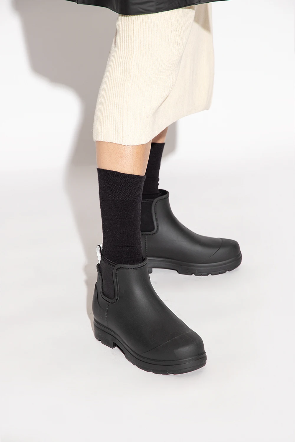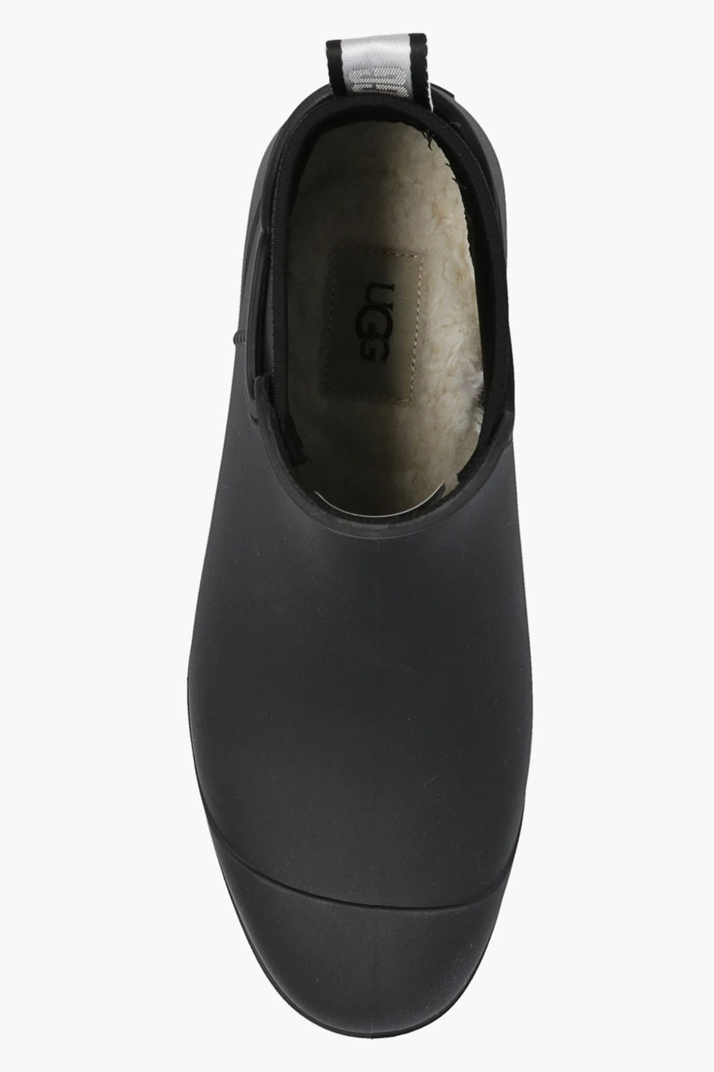 Black ‘Droplet’ rain boots from UGG. Lined with UGGplush™, this model features the brand's logo at the back and a black rubber sole at the base.