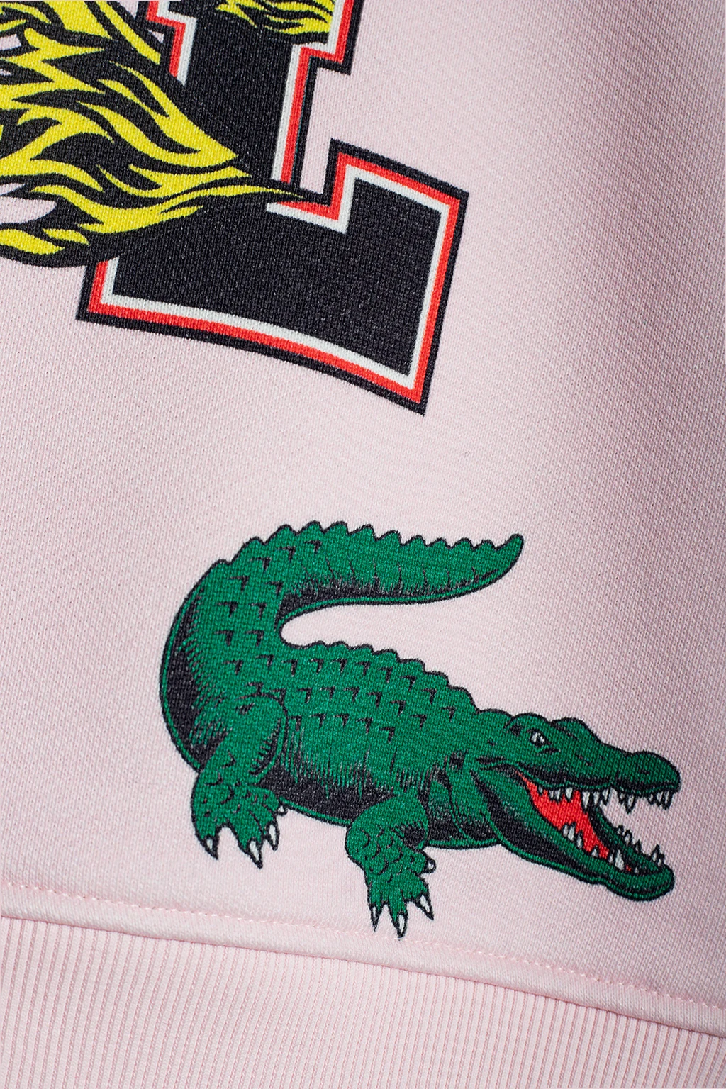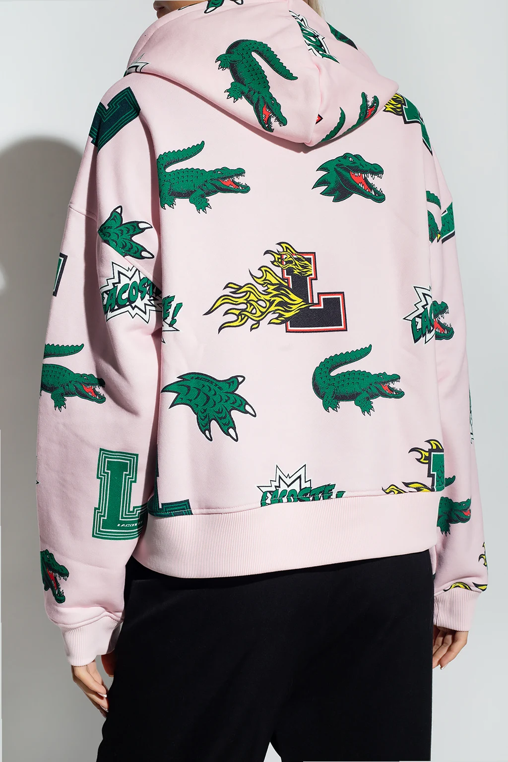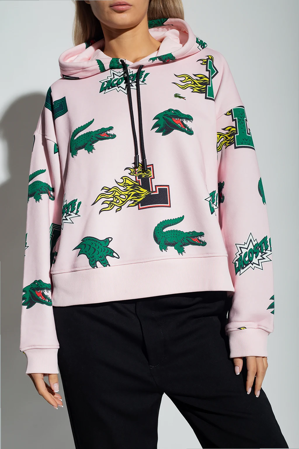 Light pink hoodie from Lacoste. Made of organic cotton, this garment features a multicolored logo pattern, patch with the brand’s signature crocodile skin effect, drawstring hood and ribbed trims at the hem and cuffs.