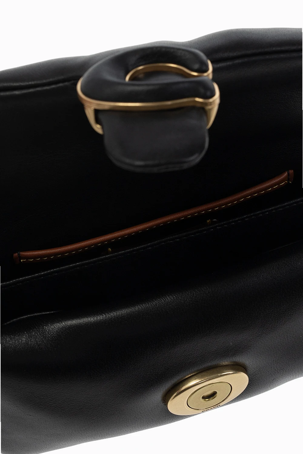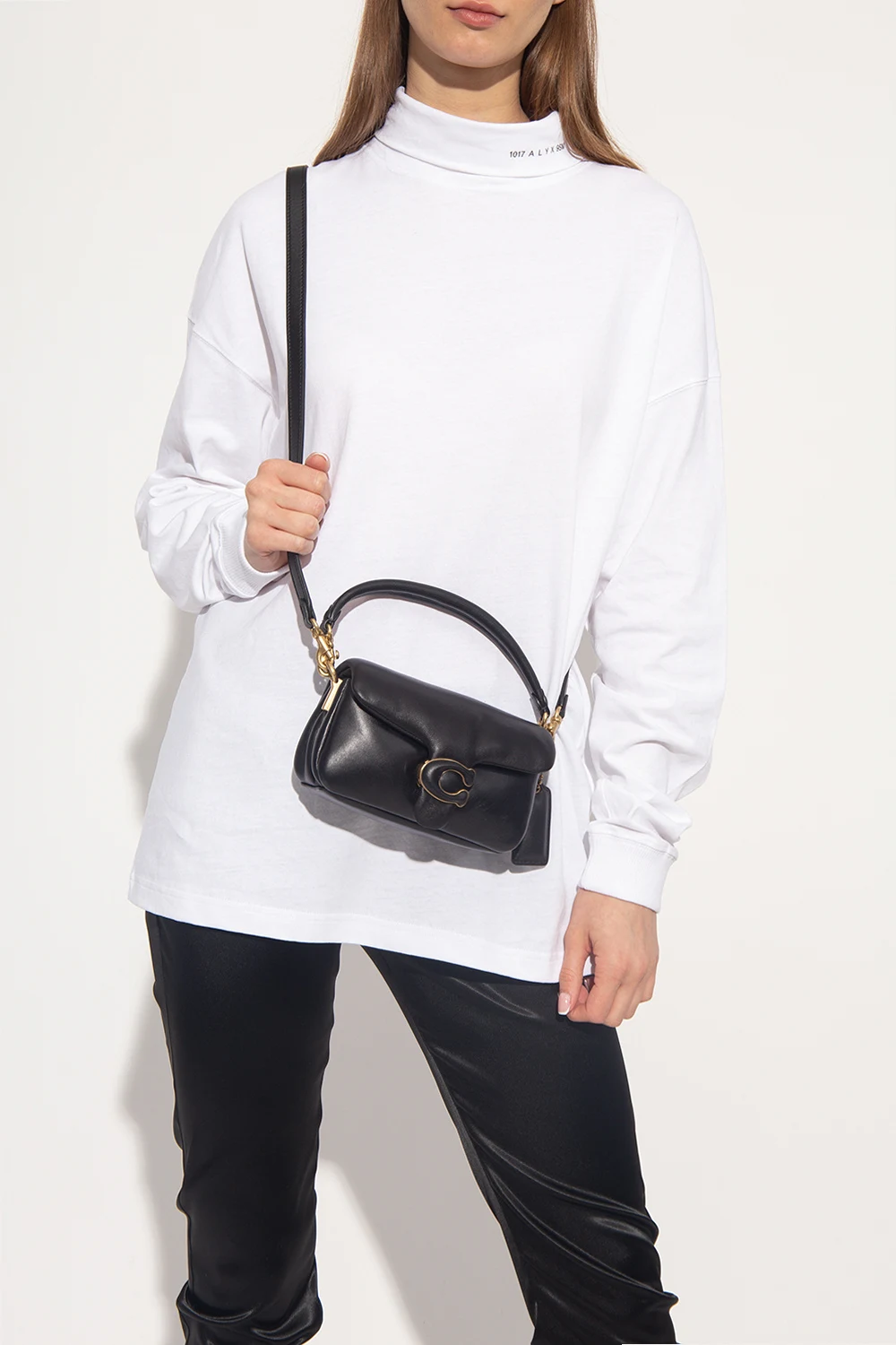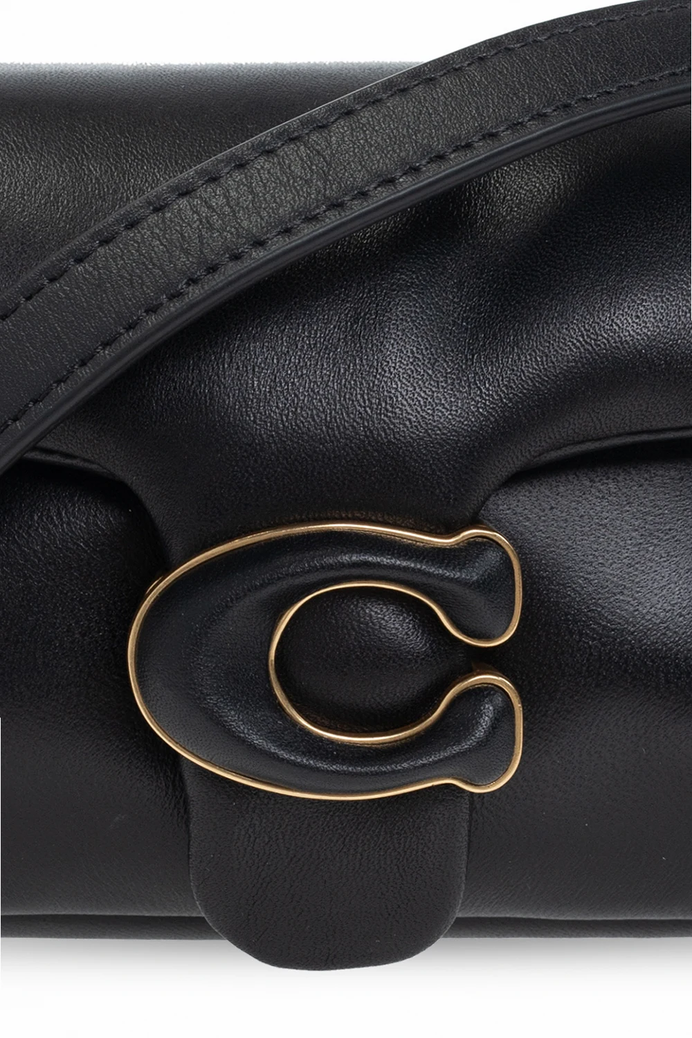 Black 'Pillow Tabby 18' shoulder bag from Coach.Made of sheep leather, this model fastens with a magnetic snap and is complete with a logo appliqué, detachable and adjustable strap, antique gold-tone metal hardware and two internal compartments with one slip pocket.
