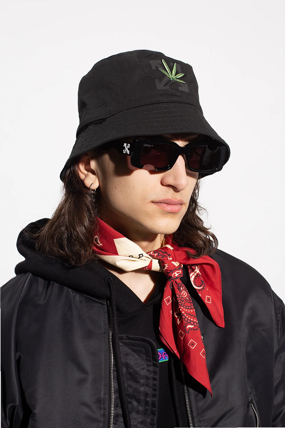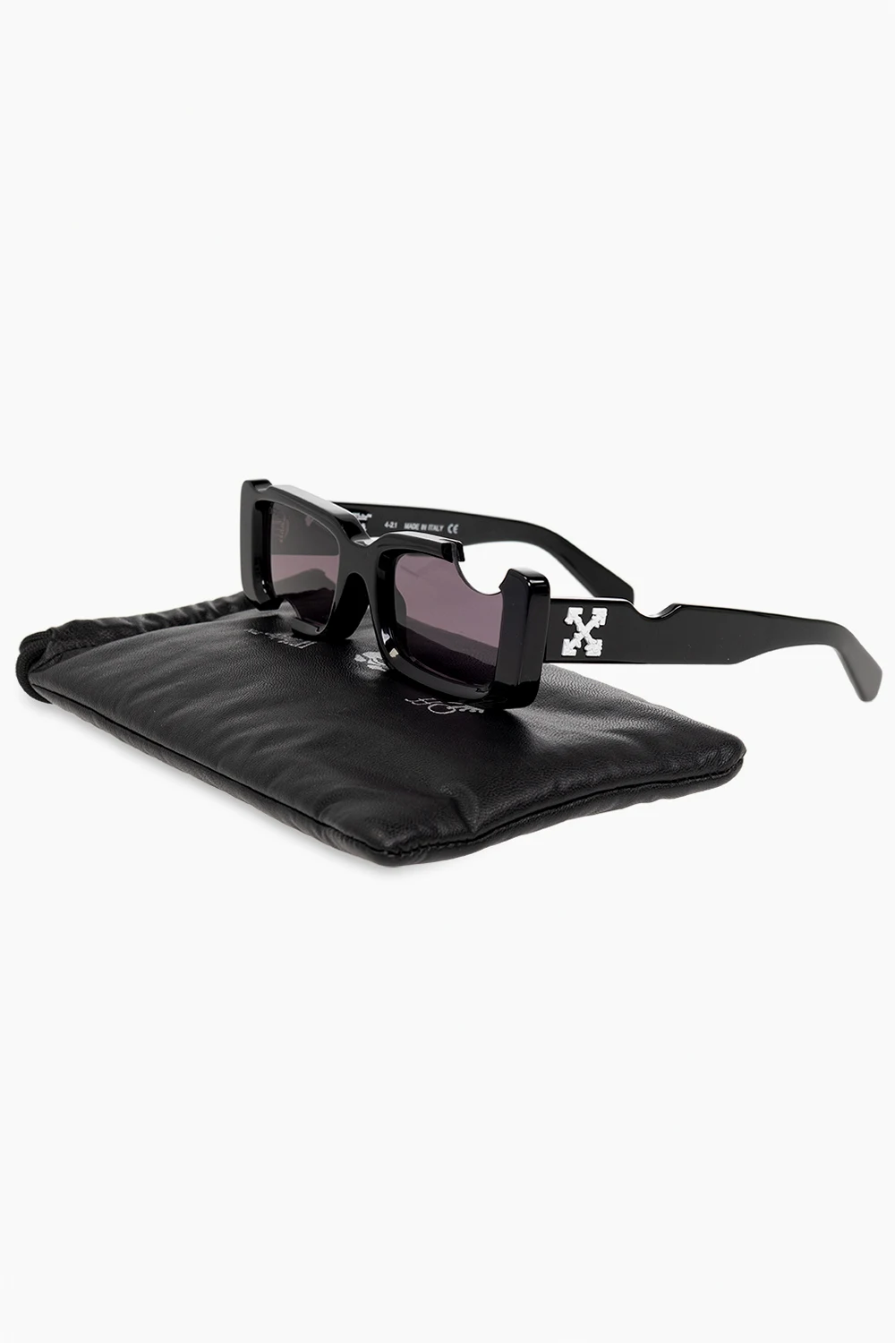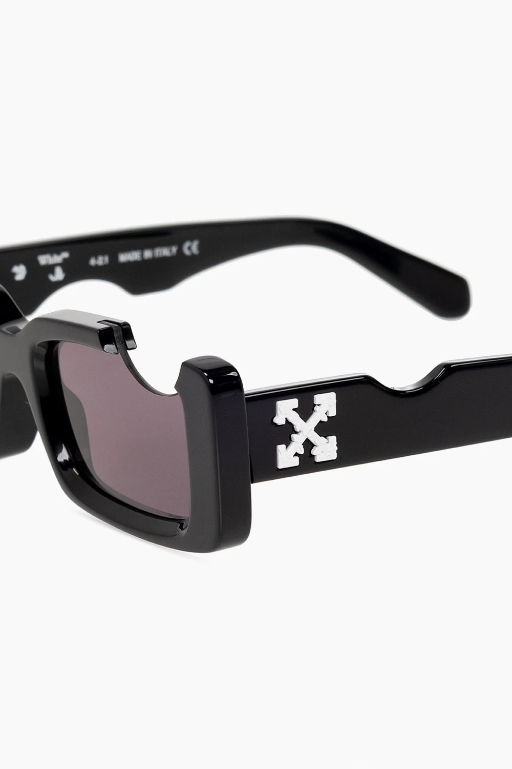 Black ‘Cady’ sunglasses from Off-White. With rectangular frames, this pair features a tactile white logo on the temples, decorative cut-outs and black lenses which ensure 100% UV protection. Case included.