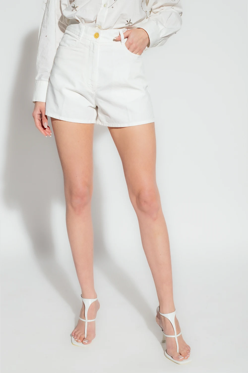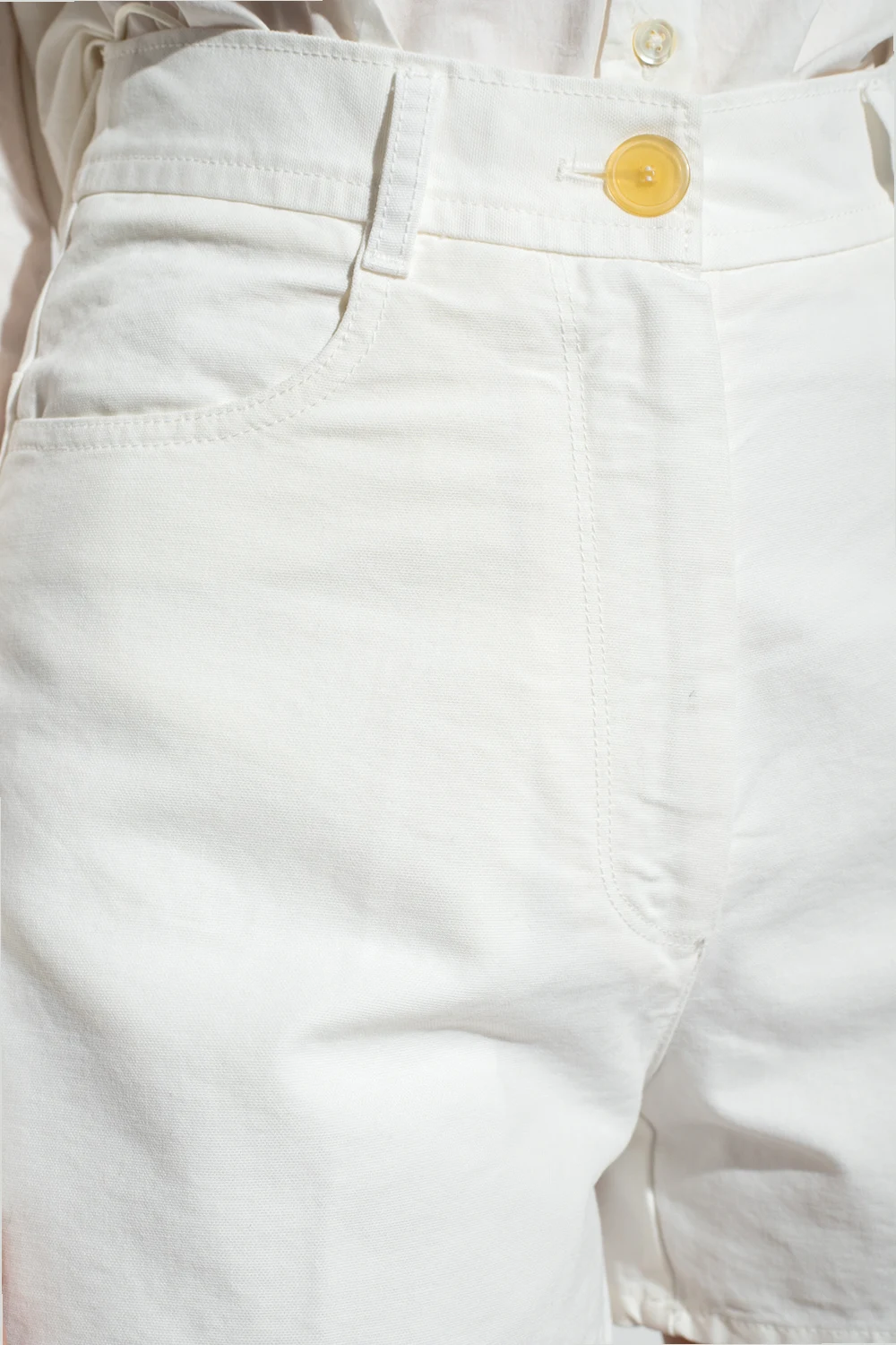 White high-waisted shorts from Forte Forte. Made of cotton, this pair features a zip and button closure, two front pockets and one back pocket.