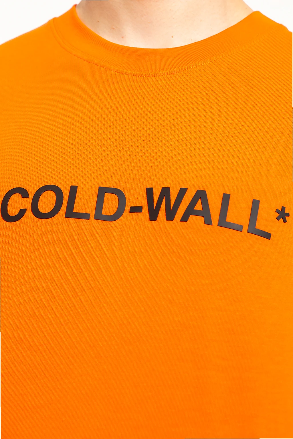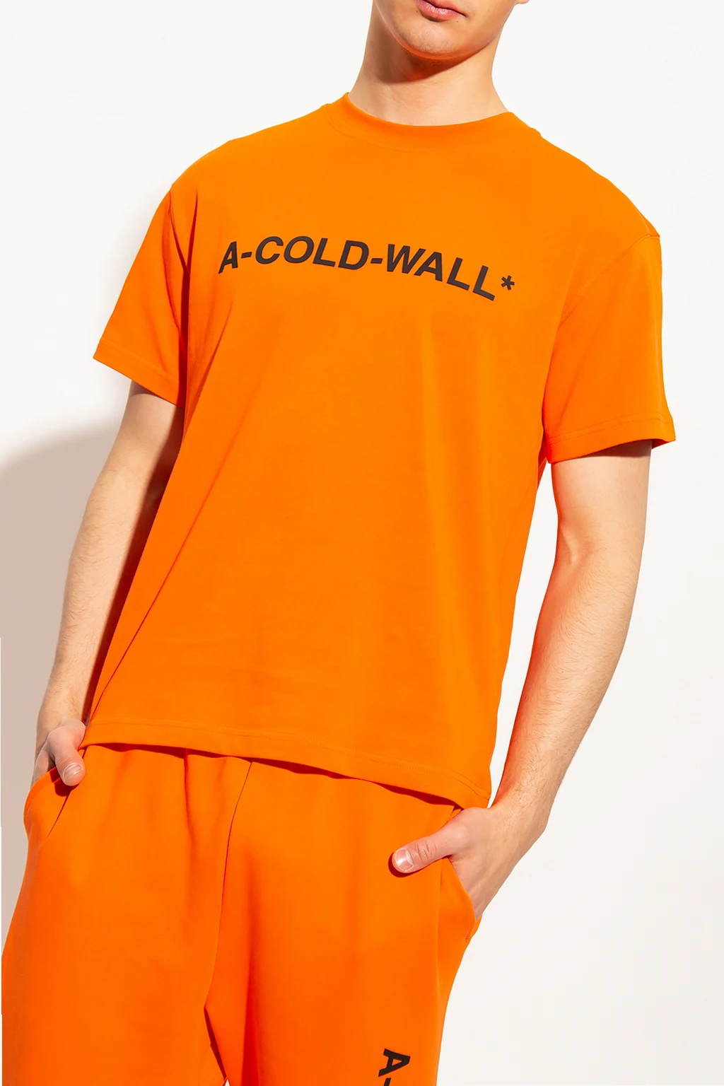 Orange crewneck T-shirt from A-COLD-WALL*. Made of cotton, this style features short sleeves, an elasticated collar and a black graphic print with the brand's logo.
