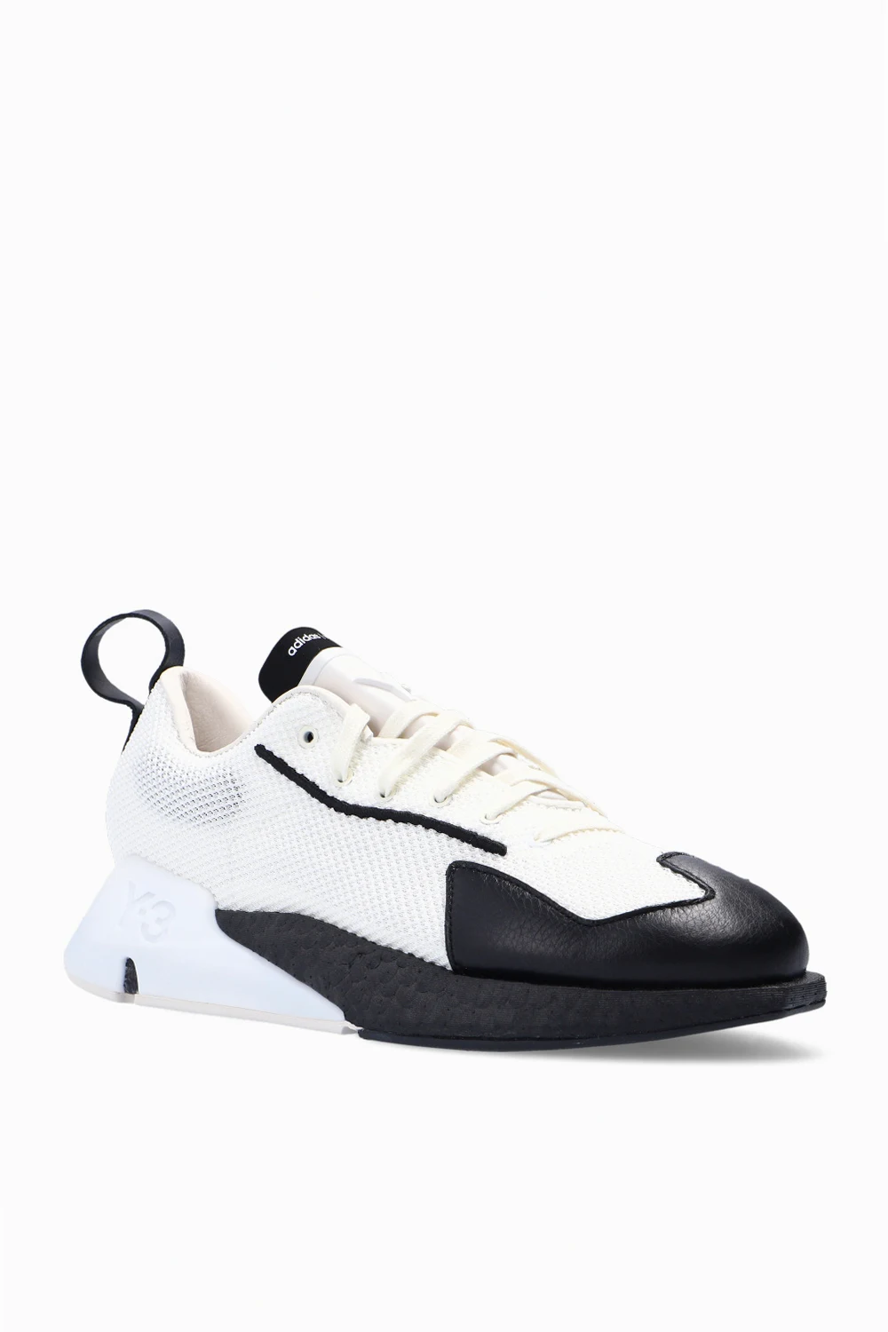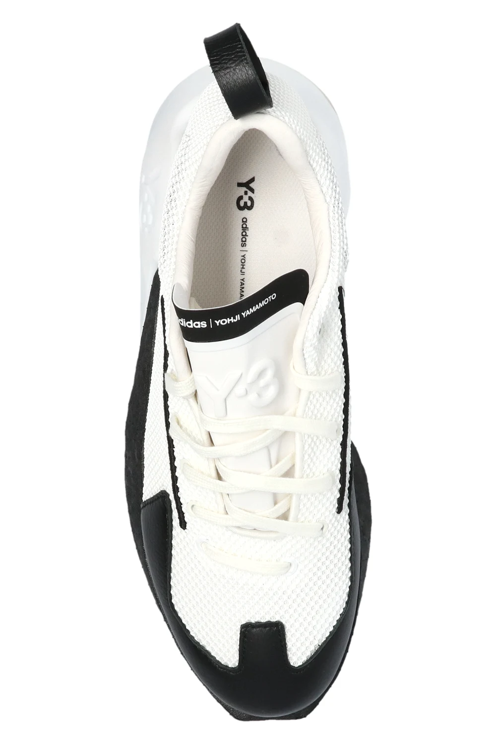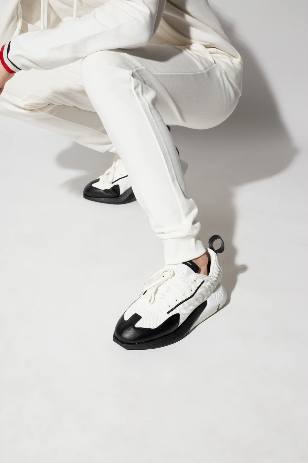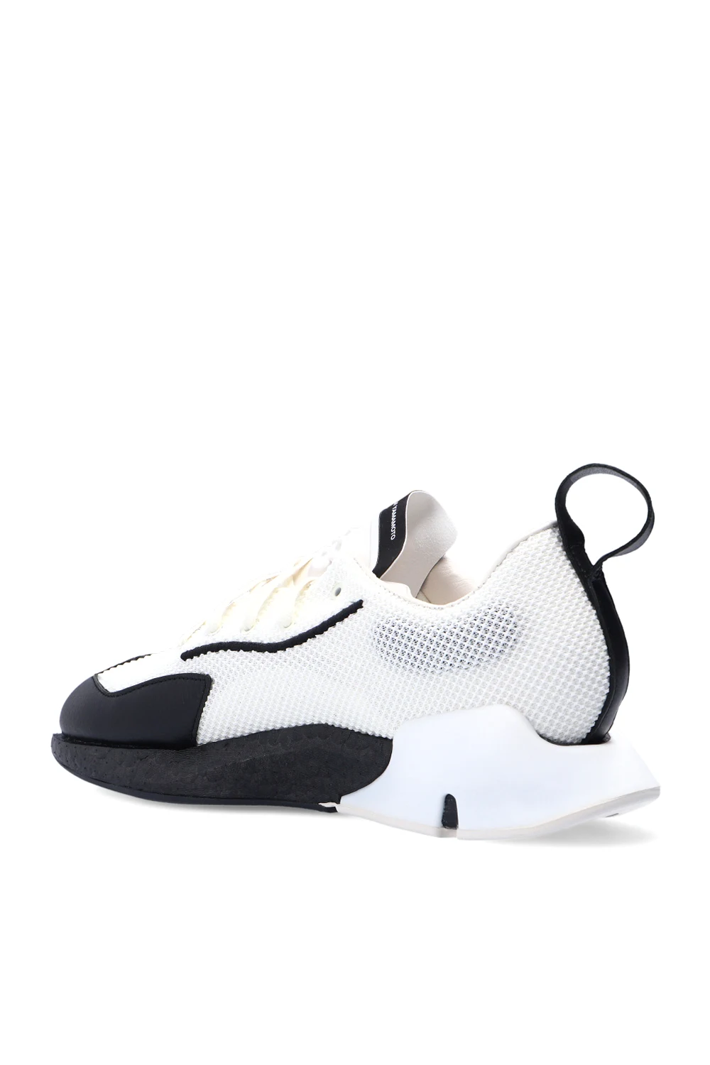 White and black ‘Orisan’ sneakers from Y-3 Yohji Yamamoto. Trimmed with mesh and leather, this lace-up design features a raised tongue appliqué with a logo, Boost midsole, lining made of waterproof and breathable GORE-TEX as well as a rubber outsole in white and black.