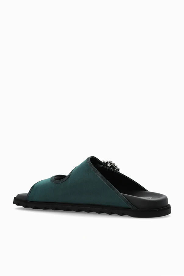 Entdecken Sie satinierte Pantoletten aus der exklusiven Kollektion von Roger Vivier – eine raffinierte Harmonie aus Ausdruck und Komfort. Die Pantoletten sind aus glänzendem Satin in Grün gefertigt und setzen damit ein einzigartiges, luxuriöses Statement. Die dicke, flache Laufsohle aus schwarzem Gummi sowie das matte, schwarze Lederfutter sorgen für Stabilität, angenehmen Tragekomfort und einen modernen Look.