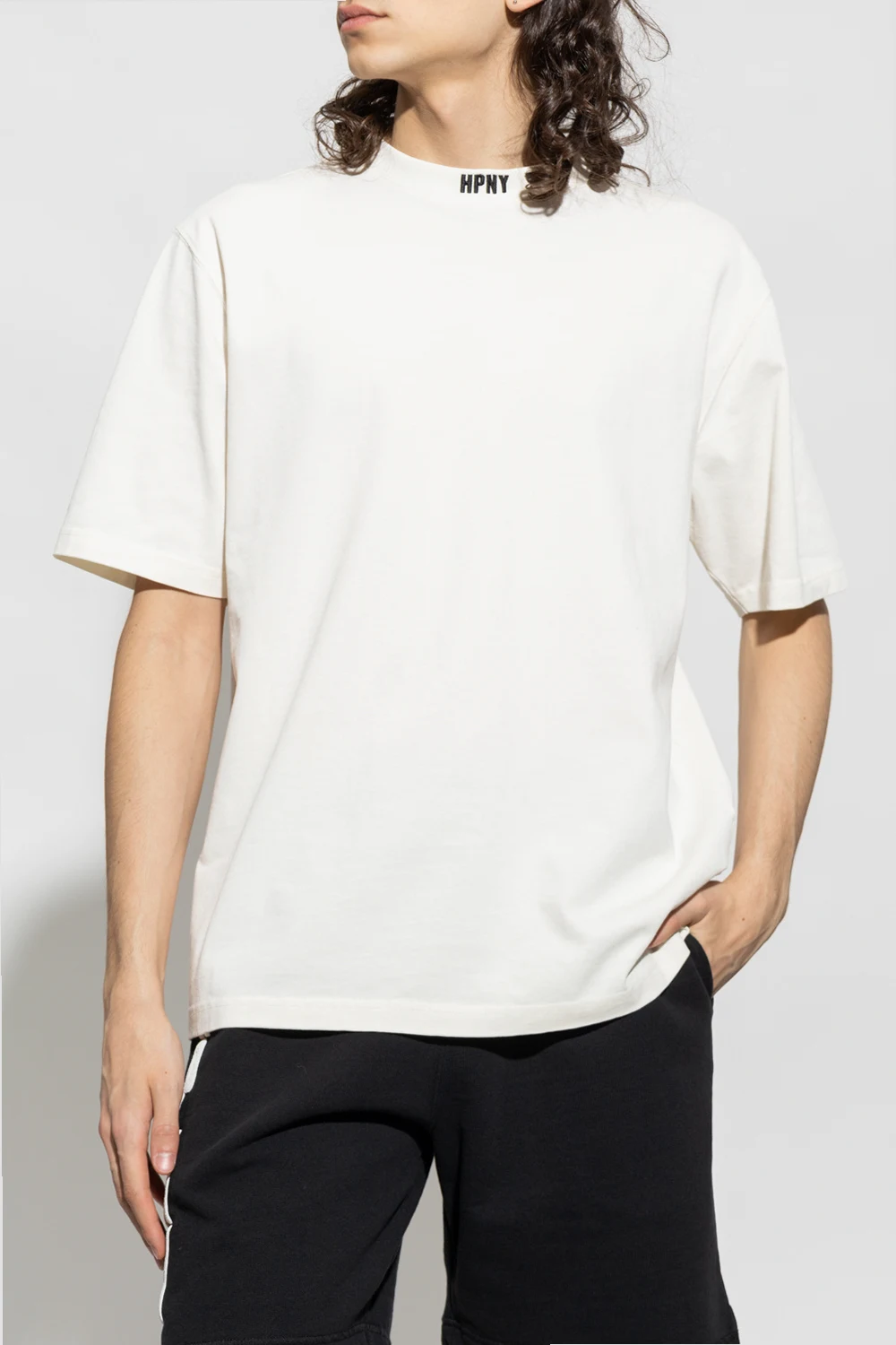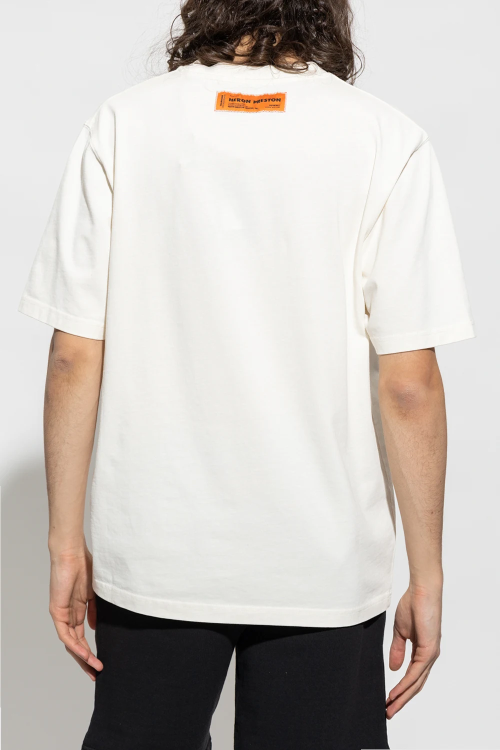 White loose-fitting T-shirt from Heron Preston. Made of cotton, this design features a black logo embroidery, orange patch at the back, ribbed crew neck and short sleeves.