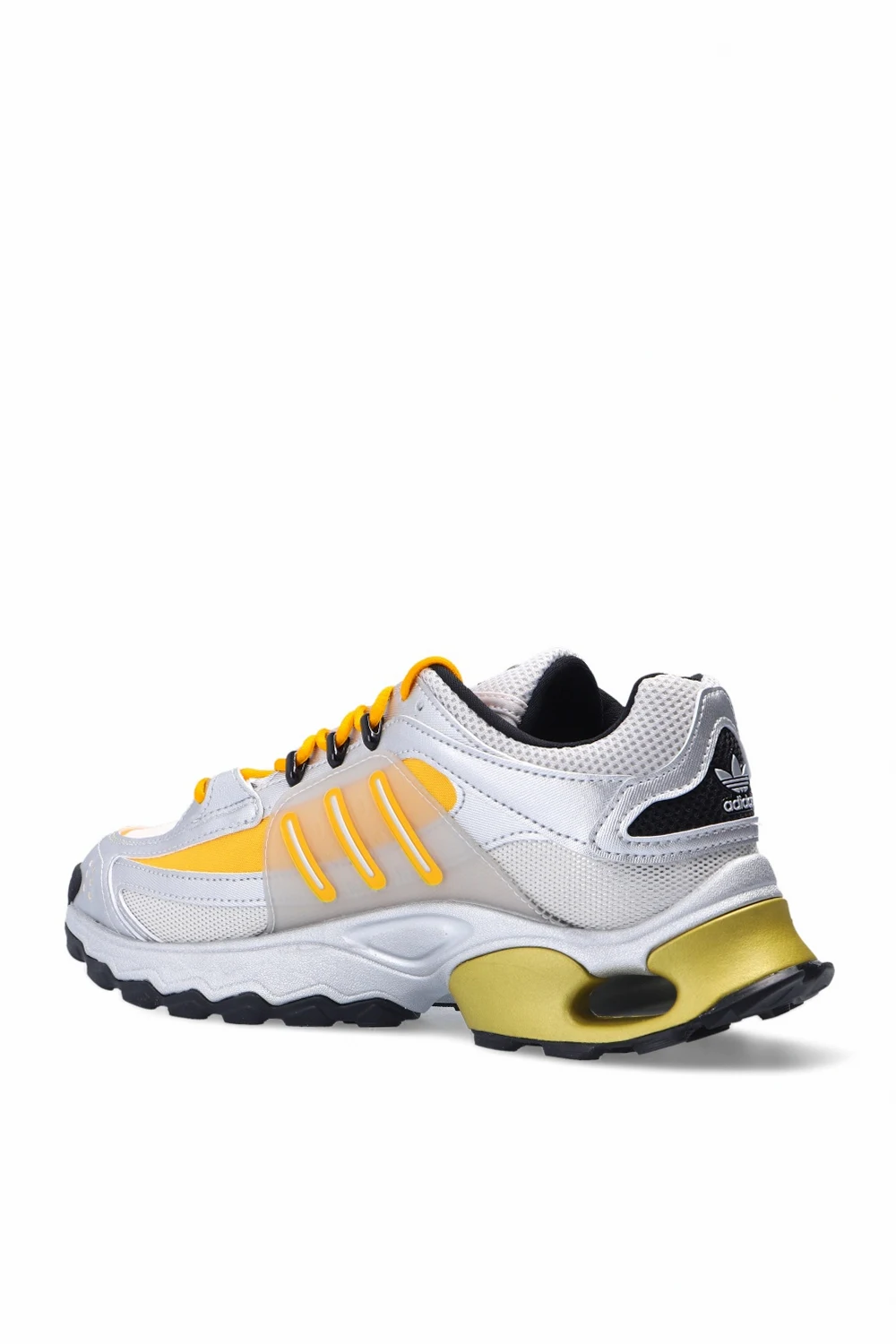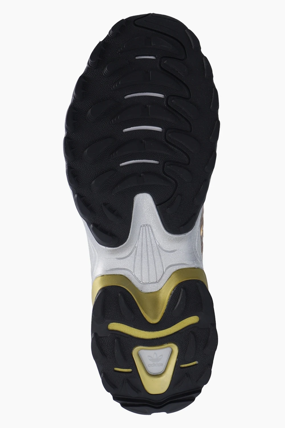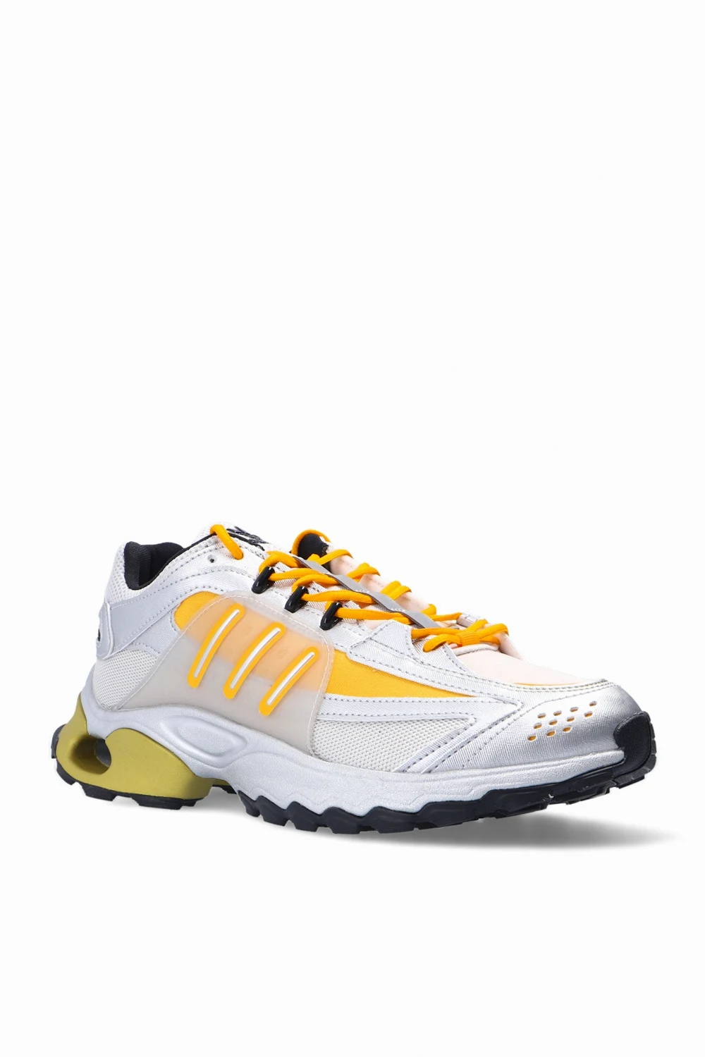 Grey, yellow and silver-tone ‘Thesia’ sneakers from ADIDAS Originals. Trimmed with mesh, this lace-up model is complete with a black raised appliqué and reflective strap on the tongue as well as the iconic three stripes on the sides and a rubber sole in black, silver-tone and gold-tone.