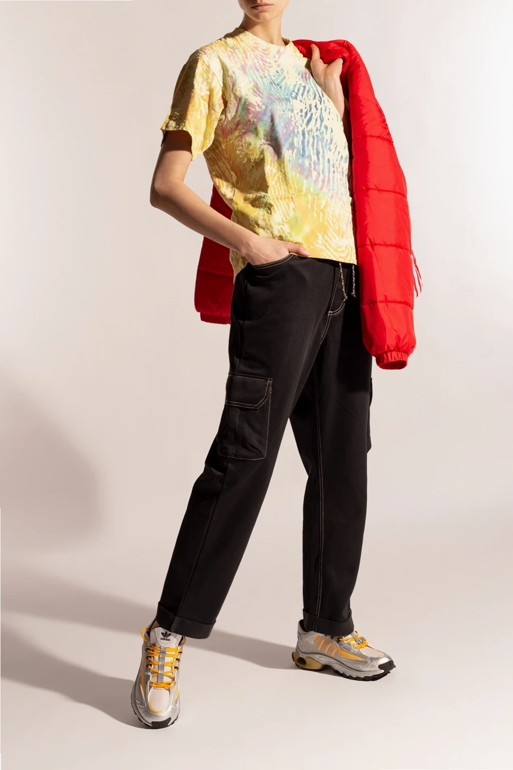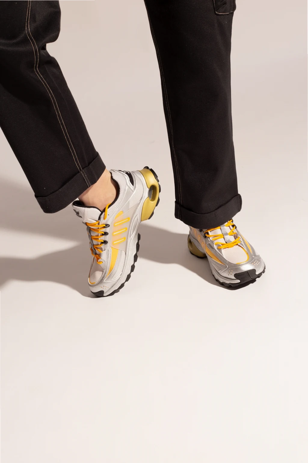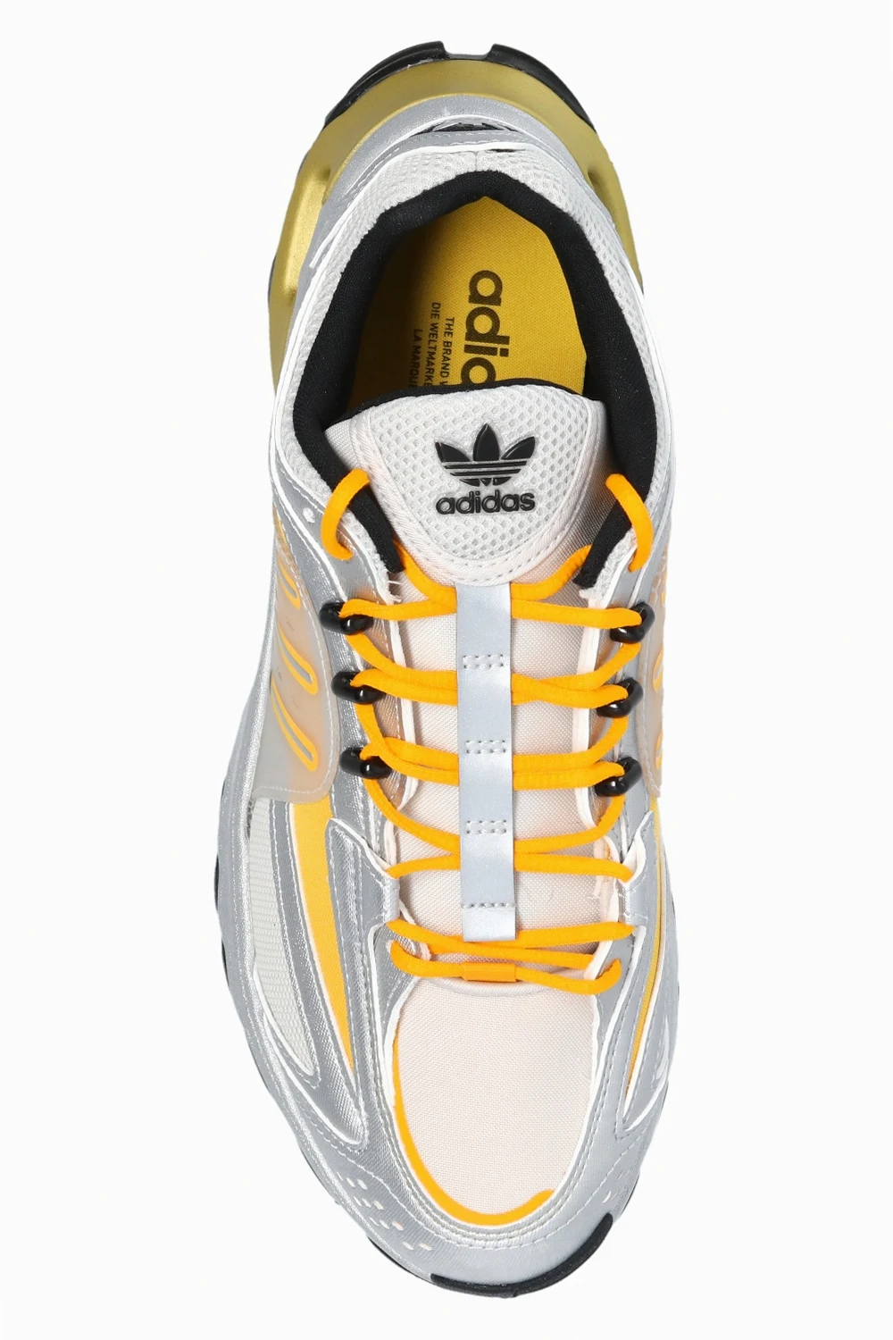 Grey, yellow and silver-tone ‘Thesia’ sneakers from ADIDAS Originals. Trimmed with mesh, this lace-up model is complete with a black raised appliqué and reflective strap on the tongue as well as the iconic three stripes on the sides and a rubber sole in black, silver-tone and gold-tone.