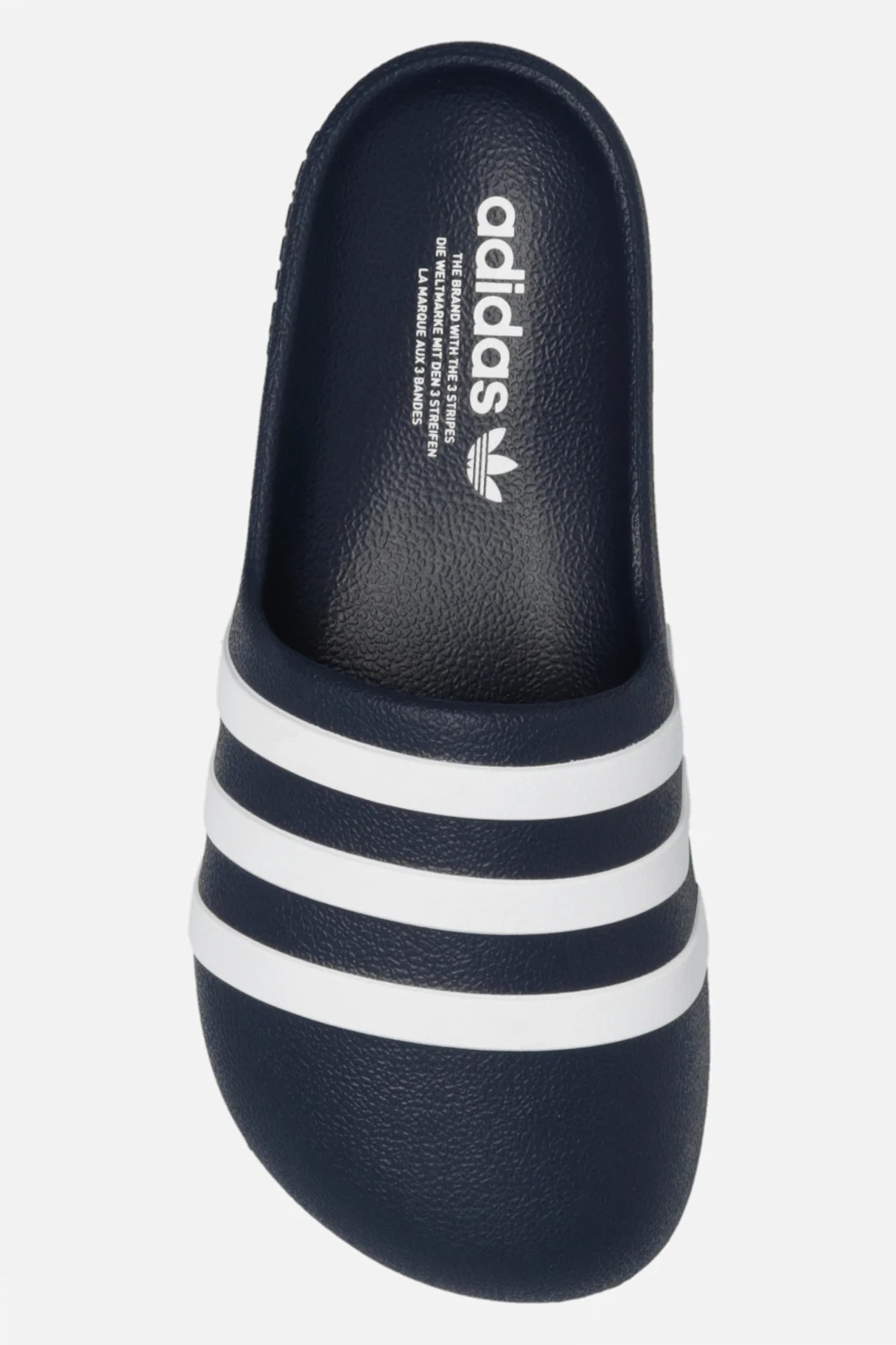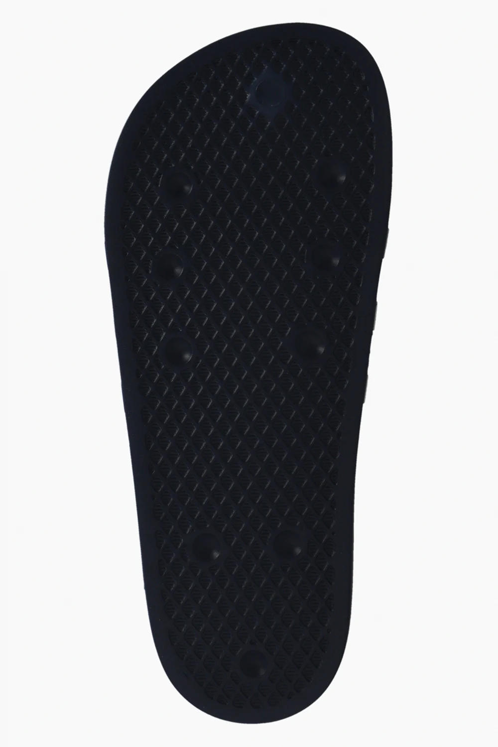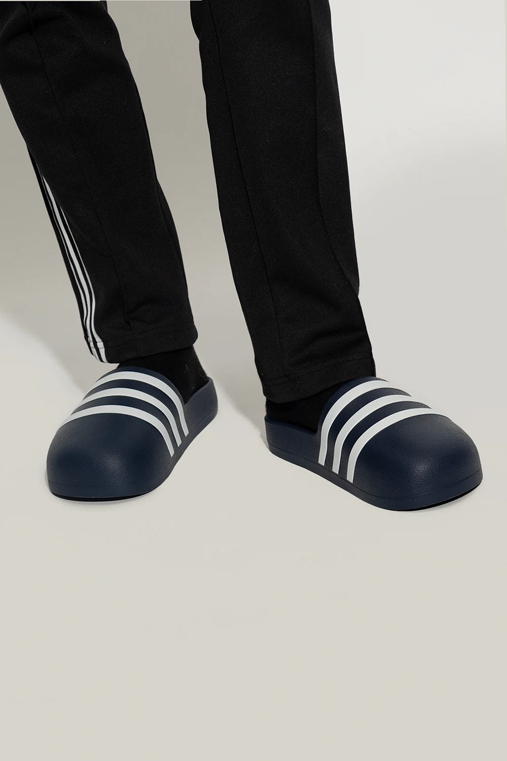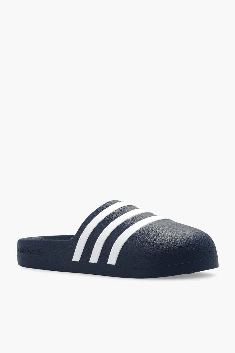 Navy blue ‘adiFOM adilette’ slides from Adidas. Made of rubber, this model sits on a navy blue sole and showcases the brand's signature three stripes.