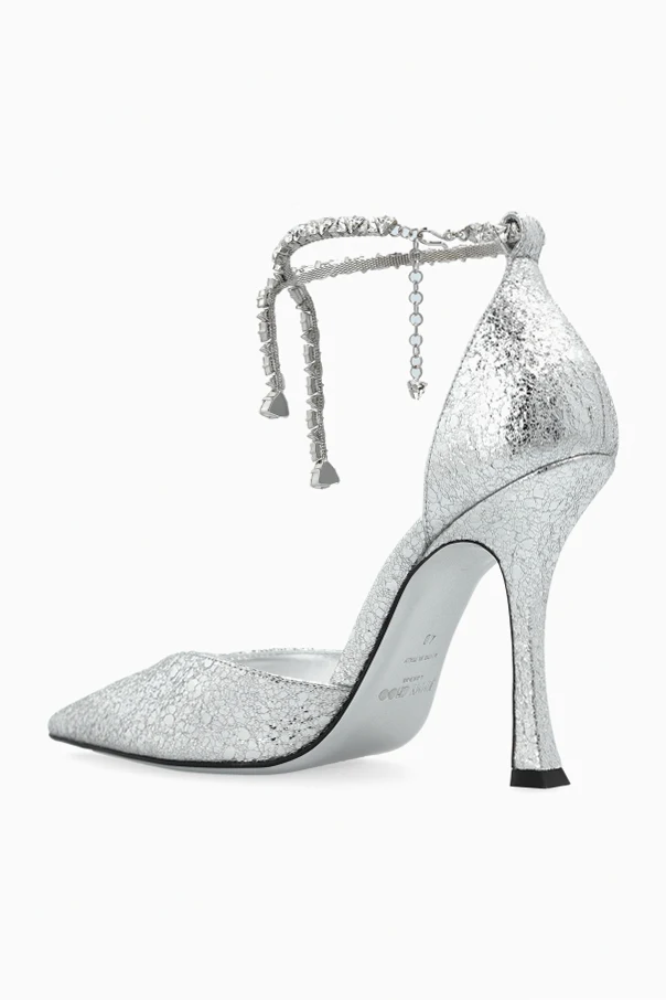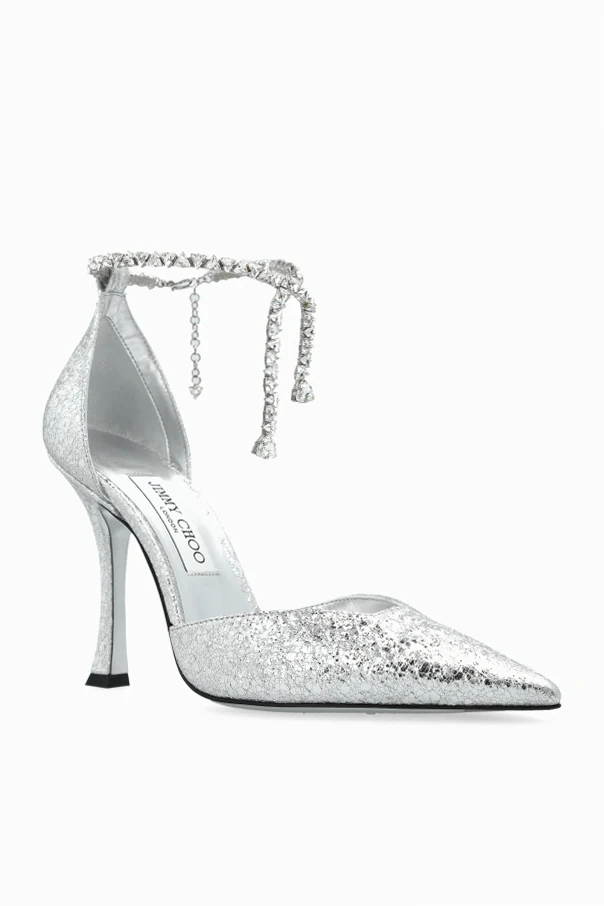 Stwvie High Heels vom Modehaus Jimmy Choo verkörpern das Konzept von Luxus und kühner Eleganz in einer raffinierten Pump-Silhouette. Der schlanke, hohe Absatz sowie die stark zugespitzte Schuhspitze verleihen dem Modell eine ausgesprochen sinnliche und moderne Ausstrahlung und unterstreichen die Einzigartigkeit jedes Outfits. Die markant gestaltete Fersenkappe mit leicht verlängertem Verlauf an der Ferse sowie der subtile d'Orsay-Ausschnitt faszinieren durch die Feinheit ihrer Form.