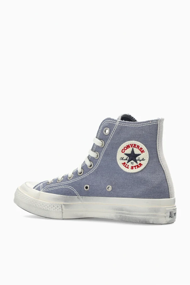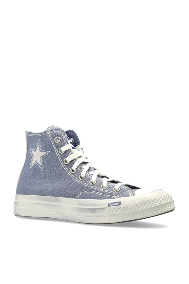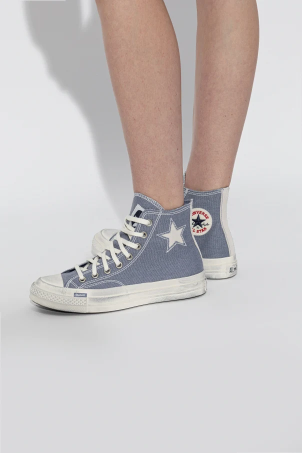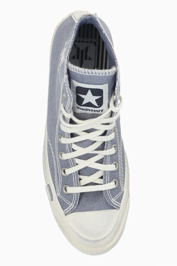 Converse x MADHAPPY ist eine zeitlose Interpretation der ikonischen Sneakers, konzipiert für Frauen, die feines Design und unbestreitbaren Komfort schätzen. Diese Schuhe begeistern durch ihre klassische, hohe Silhouette mit leicht abgerundeter Zehenpartie sowie einer robusten, flachen Sohle aus widerstandsfähigem Gummi. Das Obermaterial besteht aus edlem, hellblauem Textil und erinnert an den Geist vergangener Turnschuhe, während einzigartige Details wie der kontrastierende Stern an der Seite des Schafts und der „Converse All Star“-Patch einen modernen Akzent setzen. Das Innere der Schuhe ist mit hochwertigem Leder gefüttert, was ihren luxuriösen Charakter zusätzlich unterstreicht.