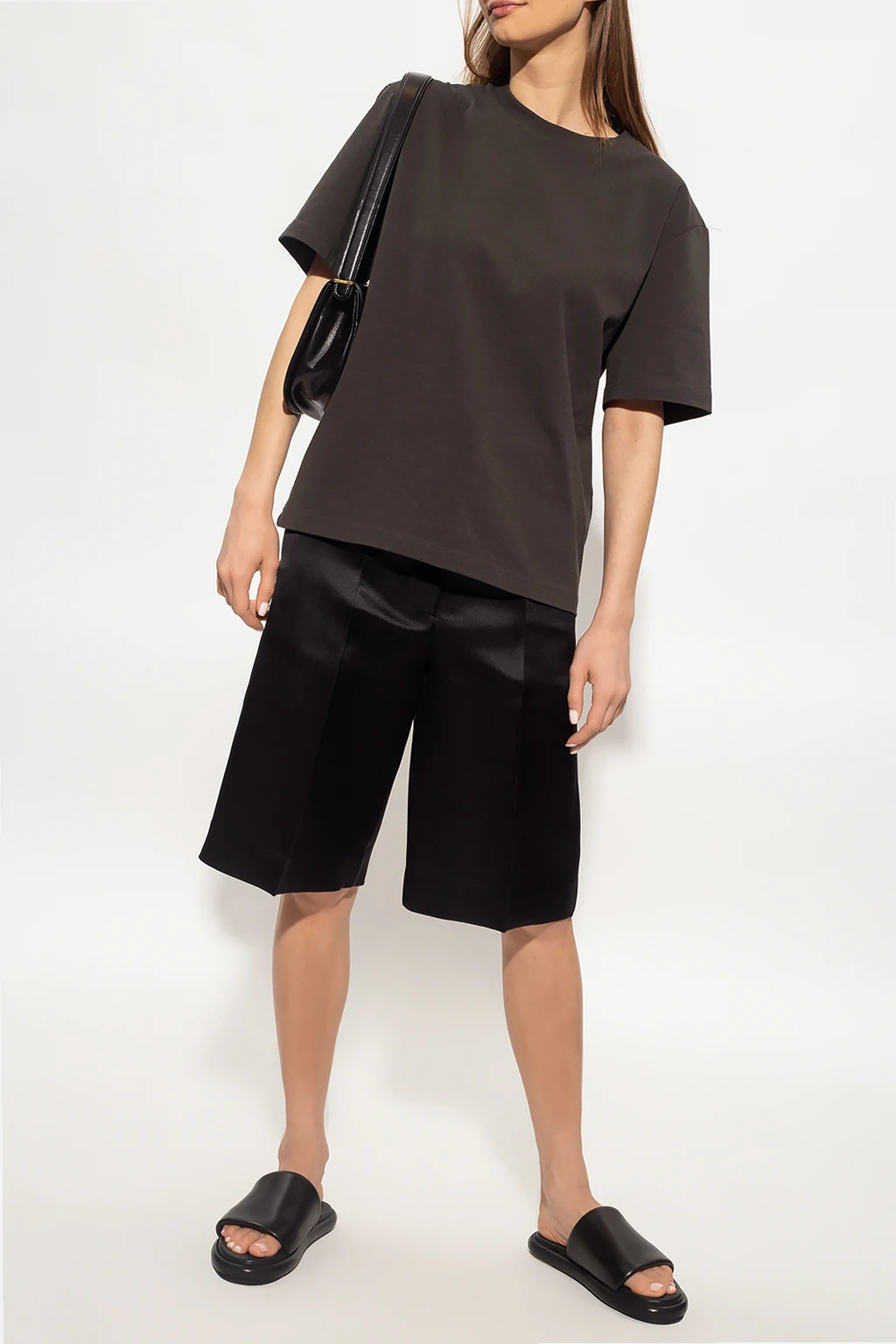 Dark brown ‘Gelsona’ T-shirt from The Row. Made of cotton, this short sleeve design features a ribbed crew neck.