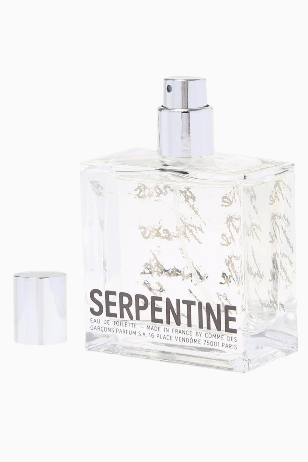 Comme des Garçons 'Serpentine' eau de parfum. Aromatic fragrance from women and men. Fragrance includes: grass, leaves, pollen (galbanum, iris leaf), oxygene (aldehyde, ozone), asphalt (black musks, nutmeg), labdanum and smoked cedar with a little bit of pollution (benzoin, juniper wood, gaac wood).