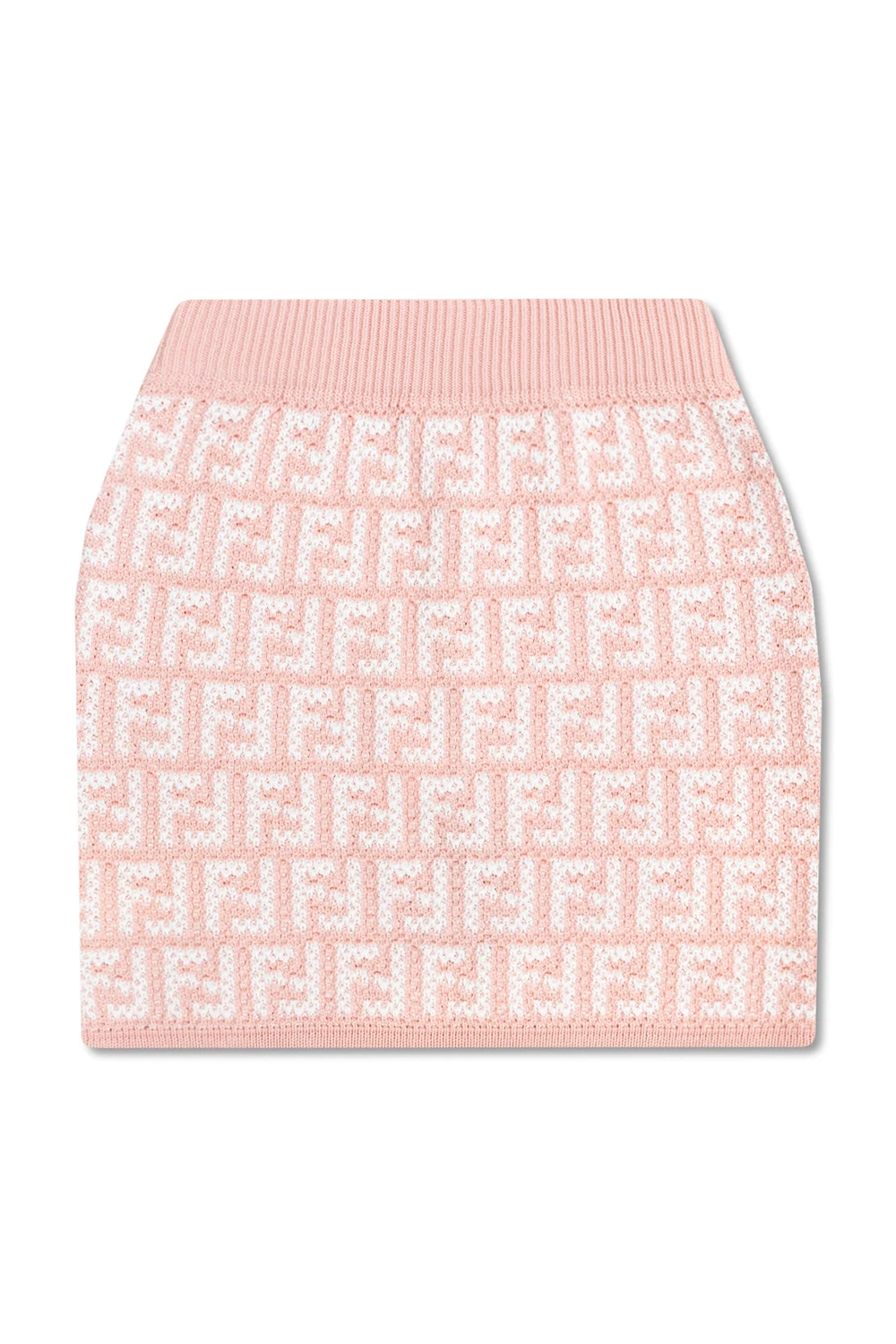 Short, pink and white skirt from Fendi Kids. This design features an elastic waistband and embroidered FF pattern.